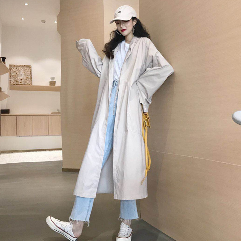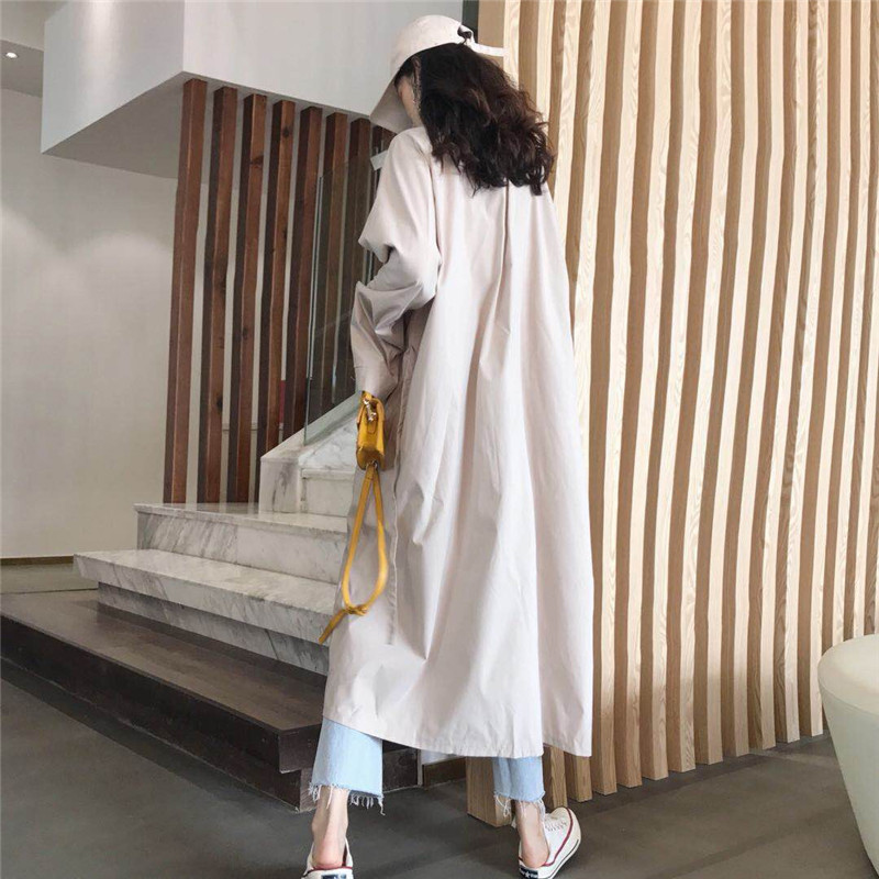 風衣女秋裝新款韓版時尚寬松中長款開衫不規則長袖過膝蓋休閑外套