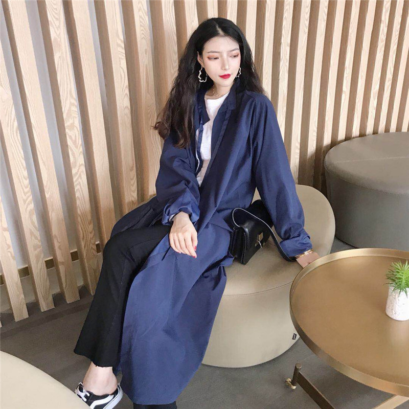 / 風衣女秋裝新款韓版時尚寬松中長款開衫不規則長袖過膝蓋休閑外套