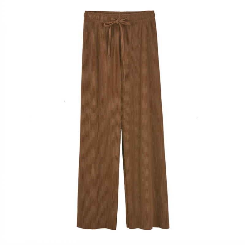 / 復古壓褶寬松闊腿褲秋裝女2018新款純色休閑褲學生高腰顯瘦長褲子