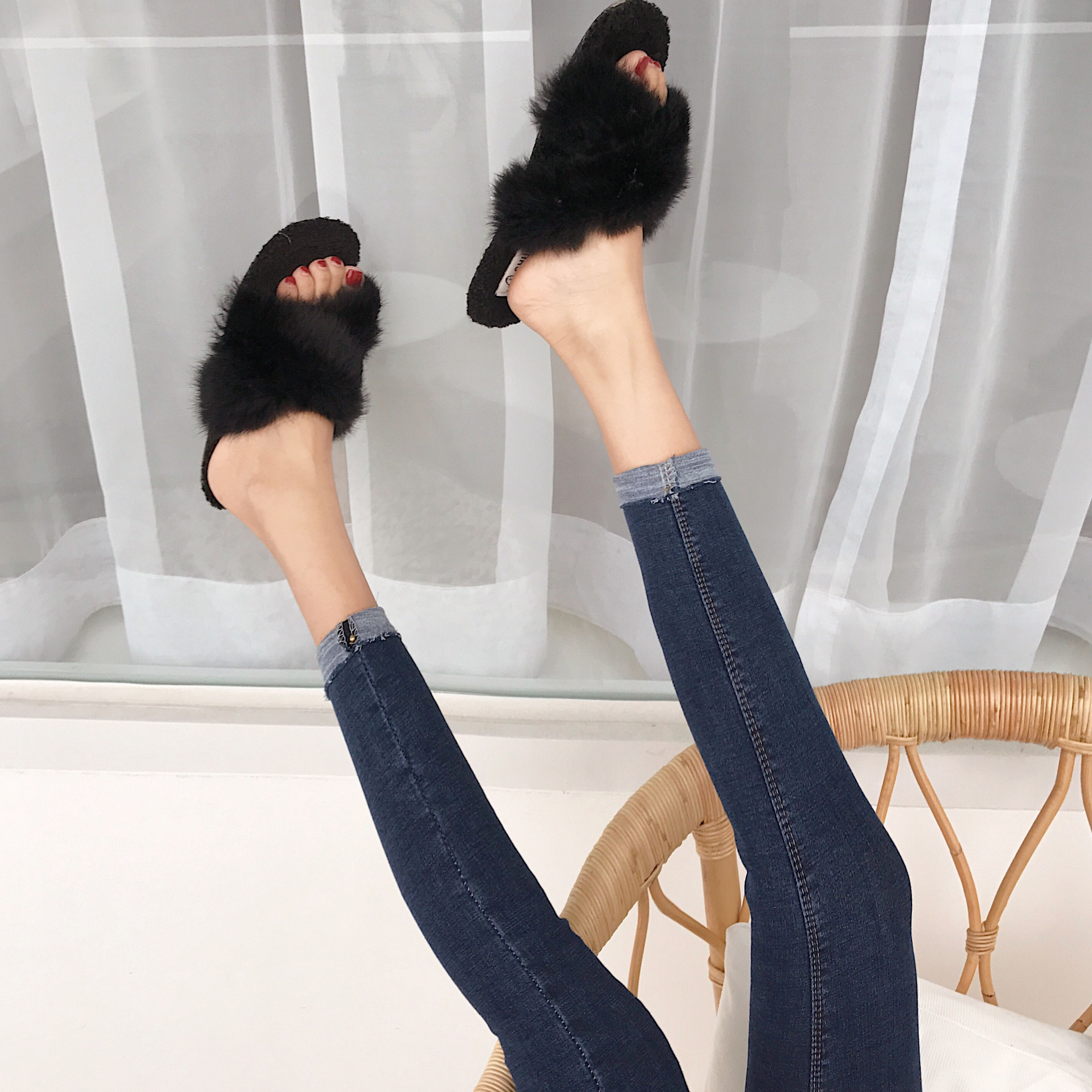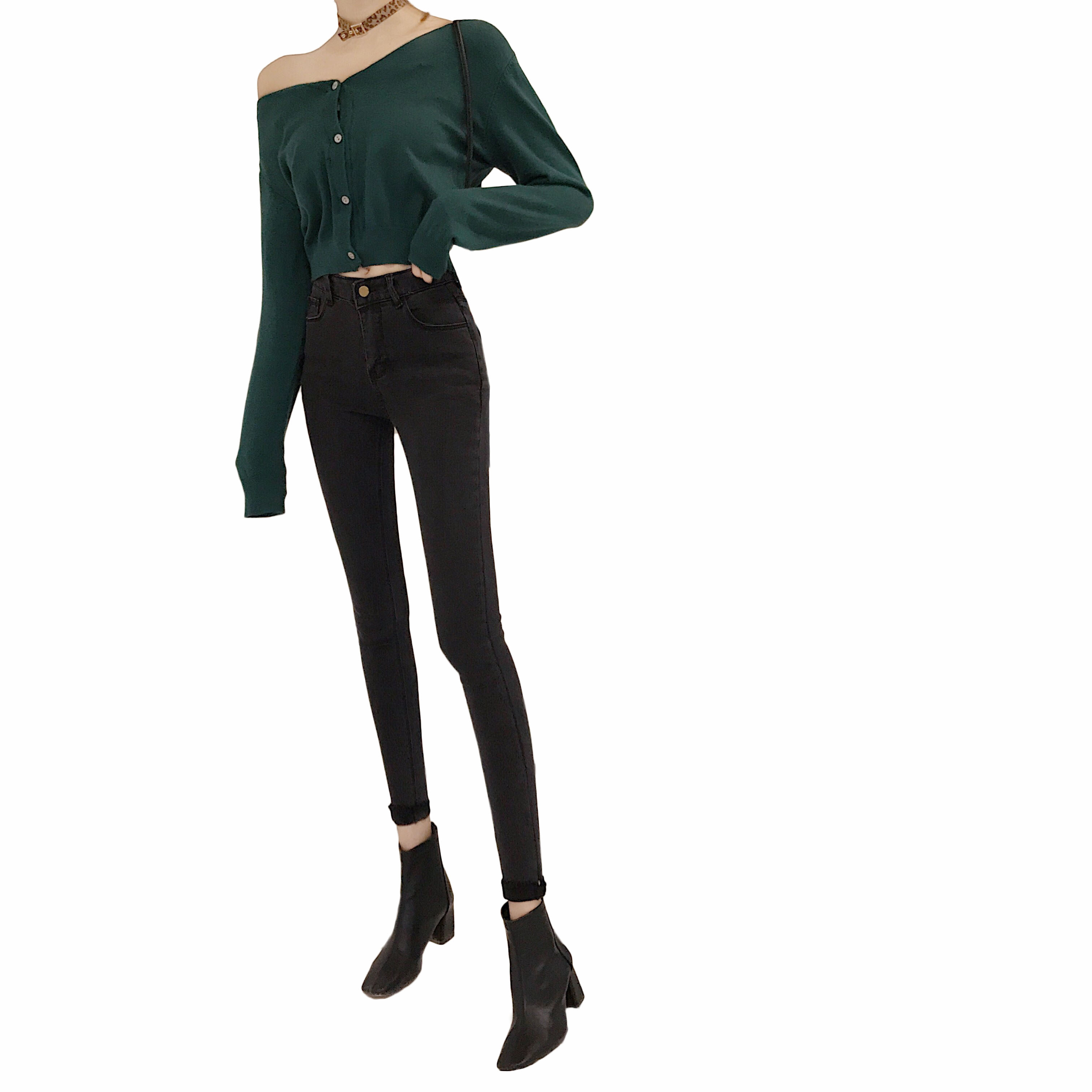 韓國chic風時尚釘珠顯瘦小腳鉛筆褲修身彈力加薄絨九分牛仔褲女潮