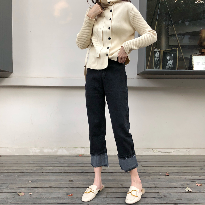 黑色針織衫|杏色針織衫|黑色牛仔褲