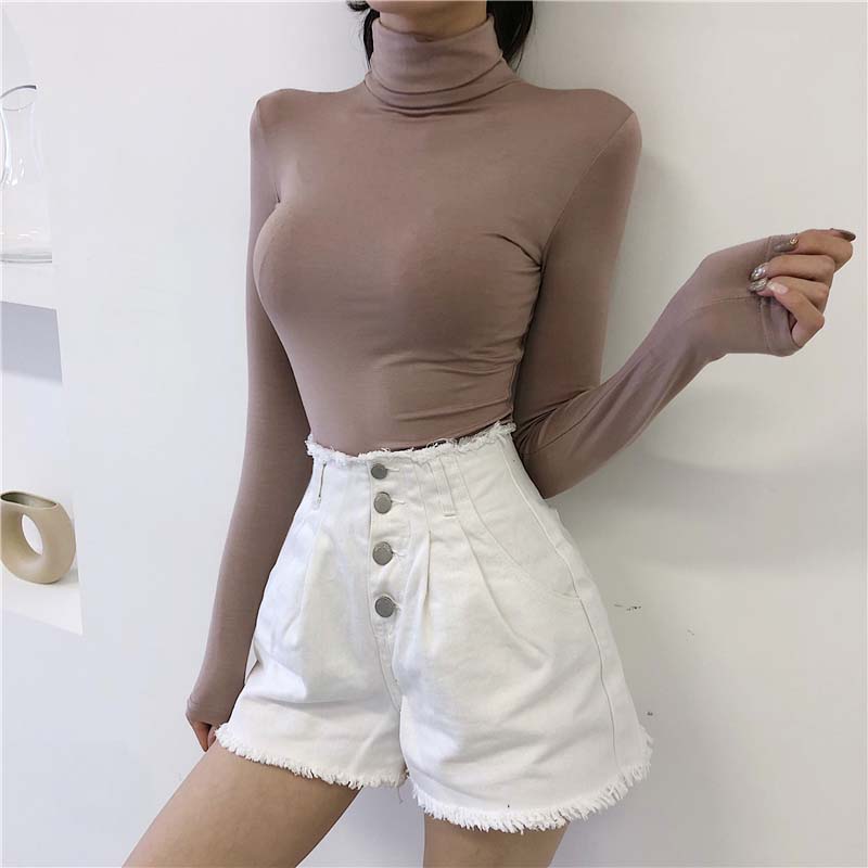 緊身打底衫秋裝女新款韓版港風修身純色長袖T恤學生慵懶高領上衣