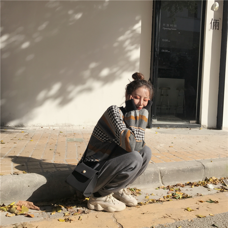 / 網紅同款秋裝女2018新款套裝包芯紗寬松針織上衣+百搭針織蘿卜褲