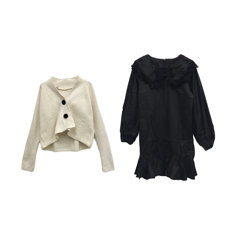 杏色毛衣|黑色毛衣|白色連衣裙|黑色連衣裙