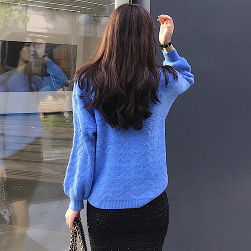 糖果色寬松毛衣女秋冬裝2018新款慵懶風針織外套學生圓領長袖上衣