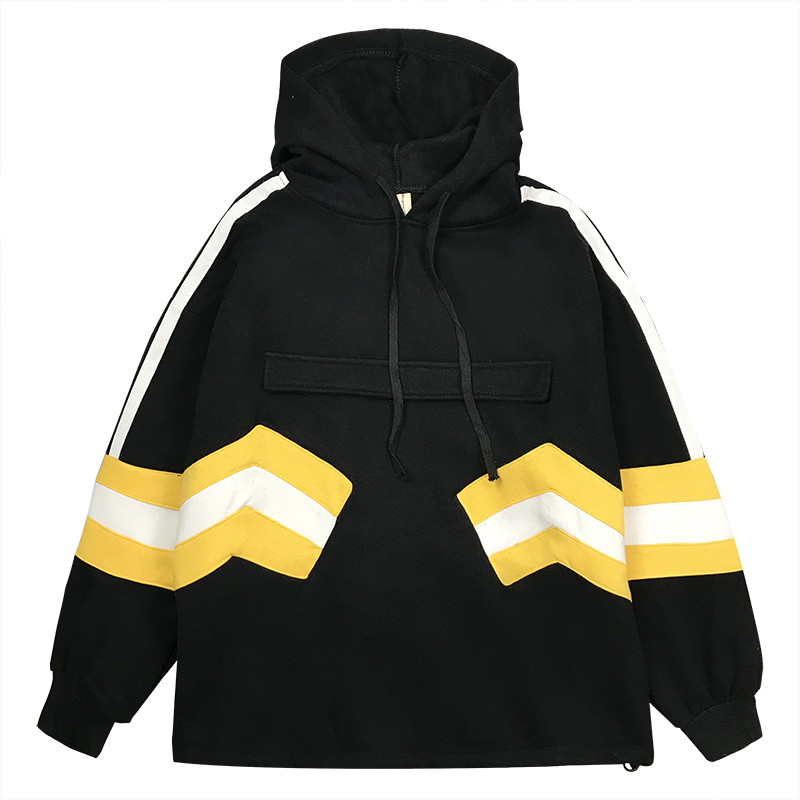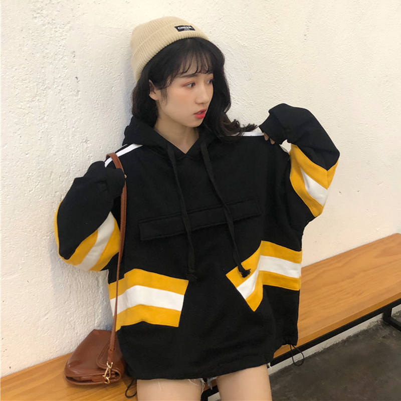 原宿風oversize連帽衛衣秋冬2018新款女裝時尚拼色加絨外套上衣潮