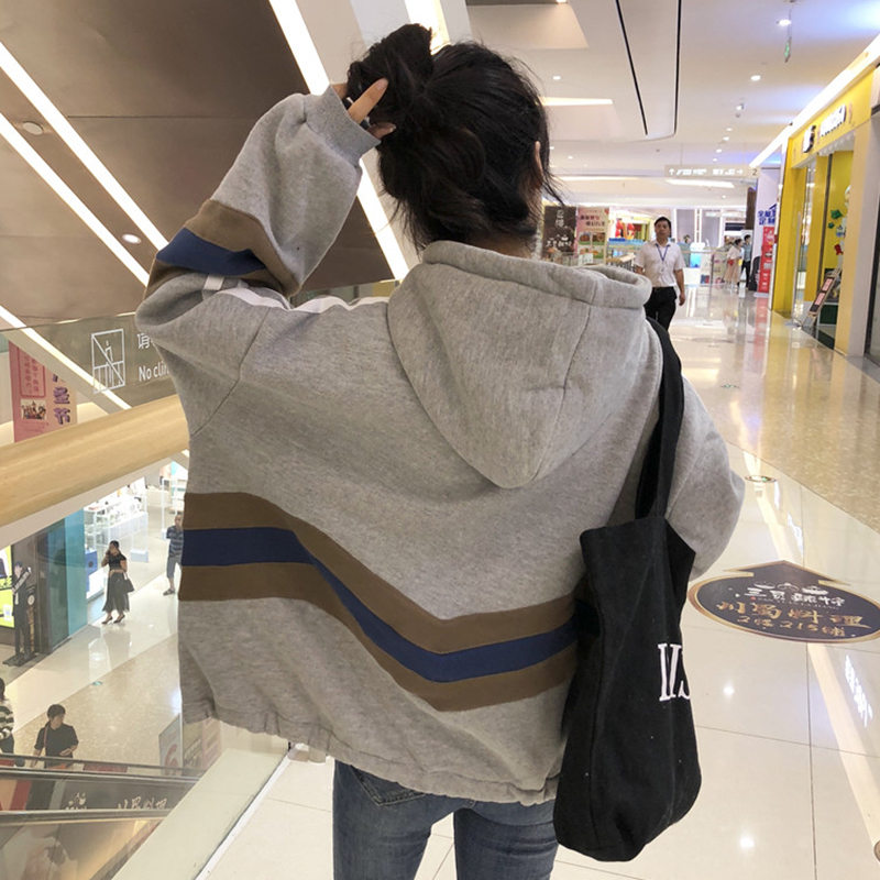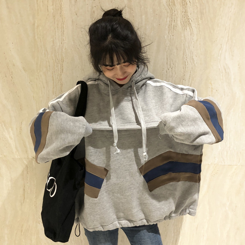 / 原宿風oversize連帽衛衣秋冬2018新款女裝時尚拼色加絨外套上衣潮