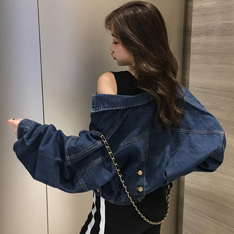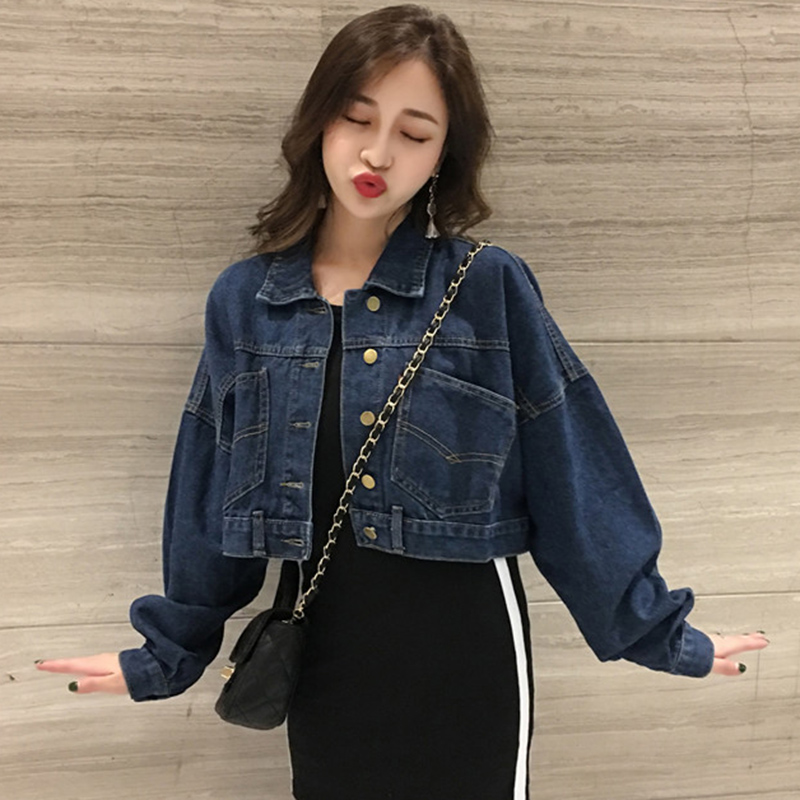 / 長袖牛仔短外套早秋新款韓版女裝學生修身百搭排扣夾克外搭上衣潮