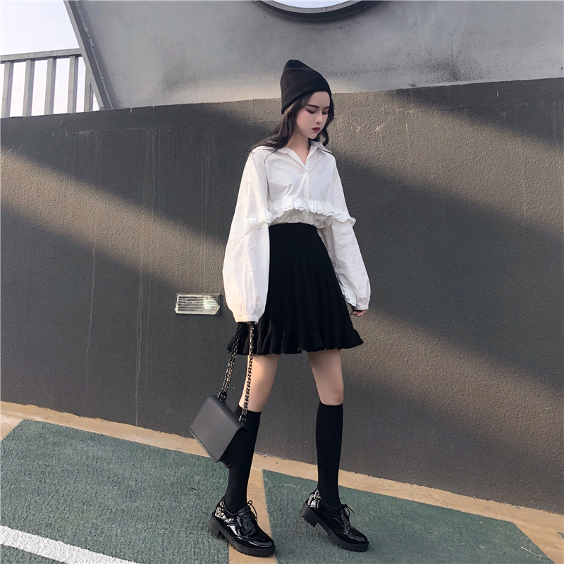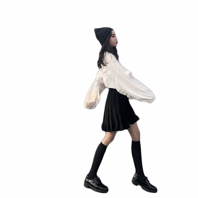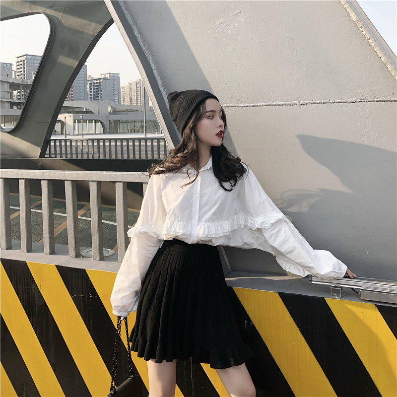 / 女神套裝秋裝網紅氣質慵懶長袖寬松白襯衫+針織半身裙高腰百褶裙