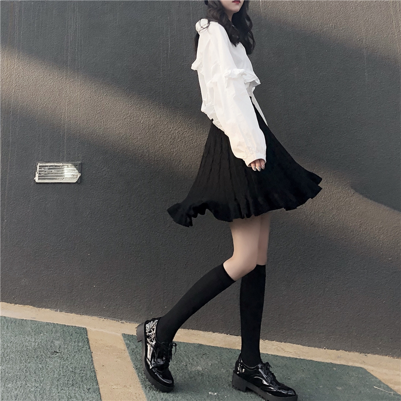 白色襯衣|黑色針織半裙