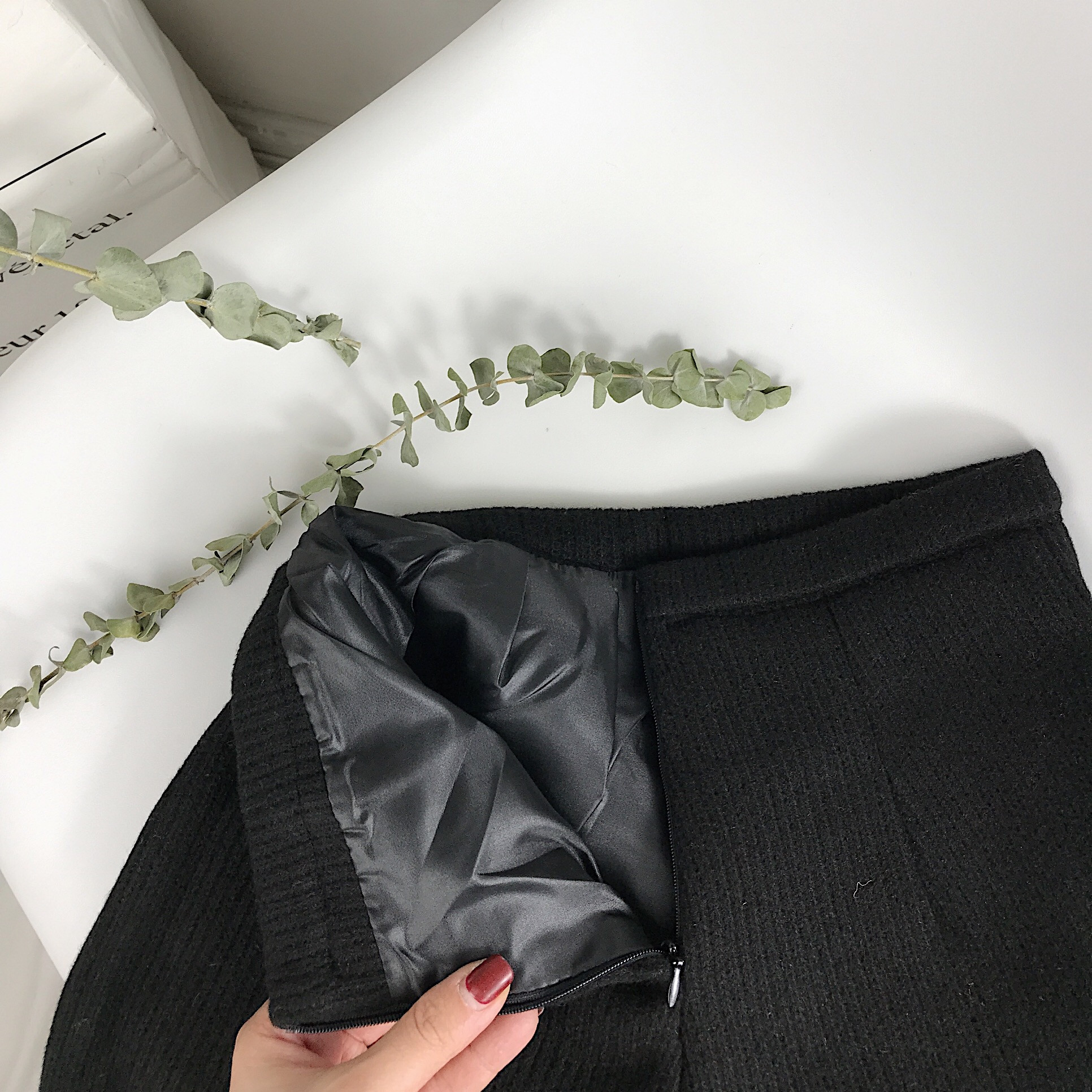 chic秋冬季新款褲子女2018新款加厚毛呢高腰闊腿褲百搭短褲加內襯