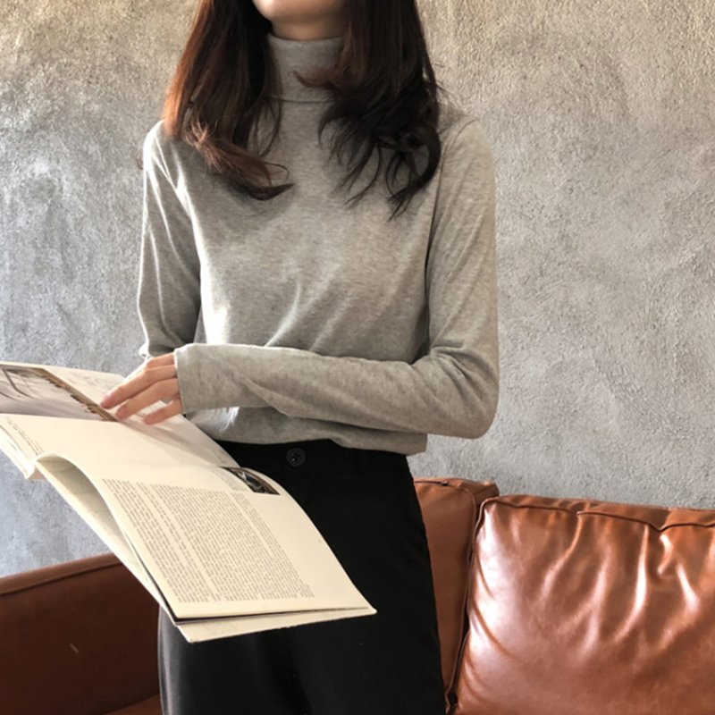 韓版高領條紋T恤女2018秋冬裝新款chic風學生百搭顯瘦彈力打底衫