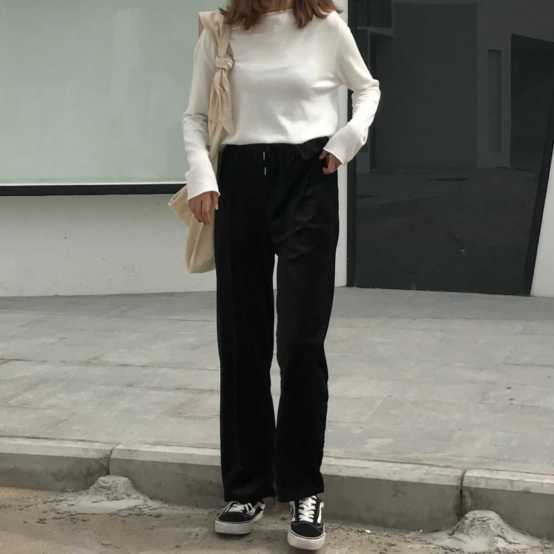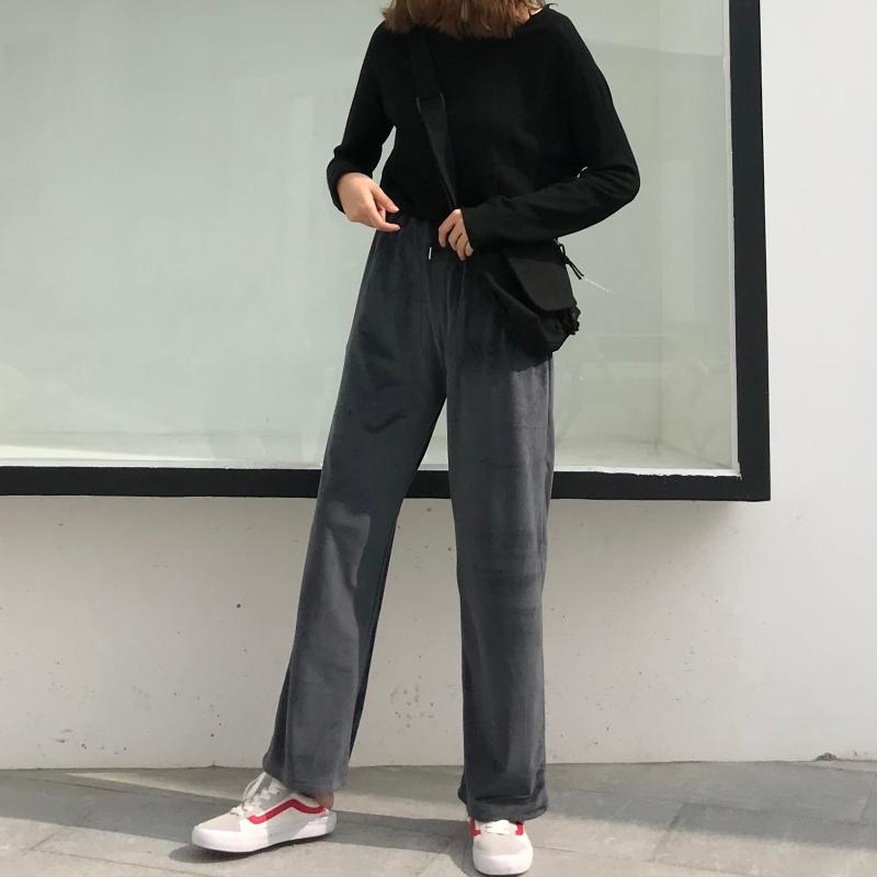 秋冬女裝2018新款韓版松緊高腰絲絨闊腿褲學生黑色寬松顯瘦長褲子