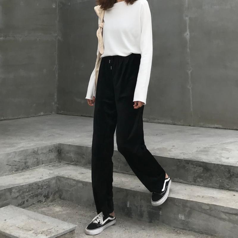 / 秋冬女裝2018新款韓版松緊高腰絲絨闊腿褲學生黑色寬松顯瘦長褲子