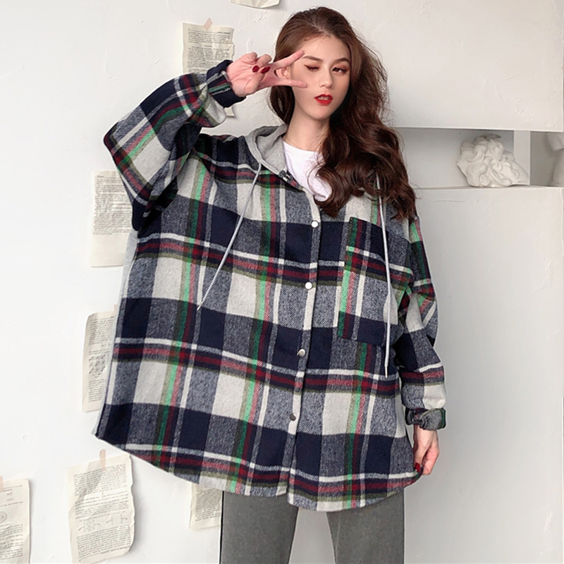 2018流行毛呢外套女秋冬裝新款赫本大衣小個子格紋開衫長袖上衣潮