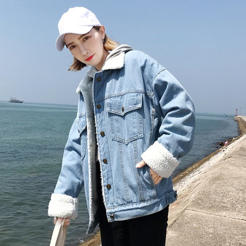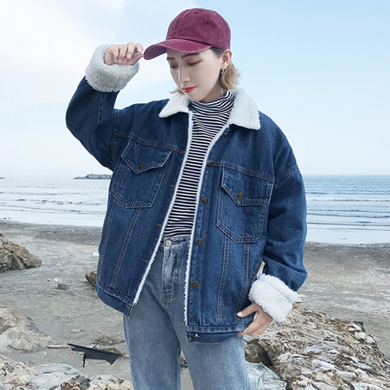 / 秋冬女2018新款寬松羊羔毛加厚翻領牛仔外套學生復古大碼夾克上衣