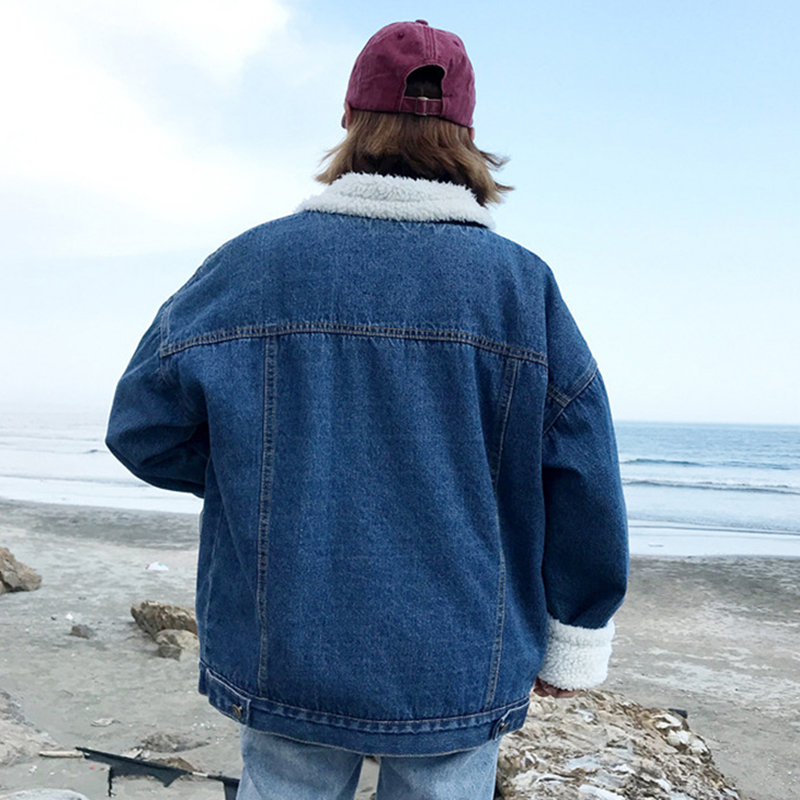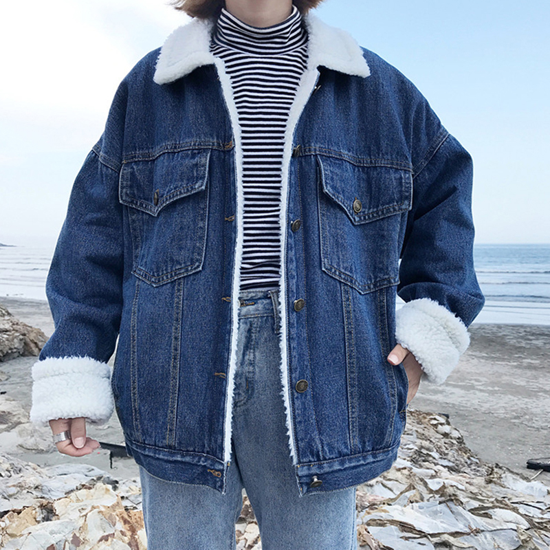 秋冬女2018新款寬松羊羔毛加厚翻領牛仔外套學生復古大碼夾克上衣