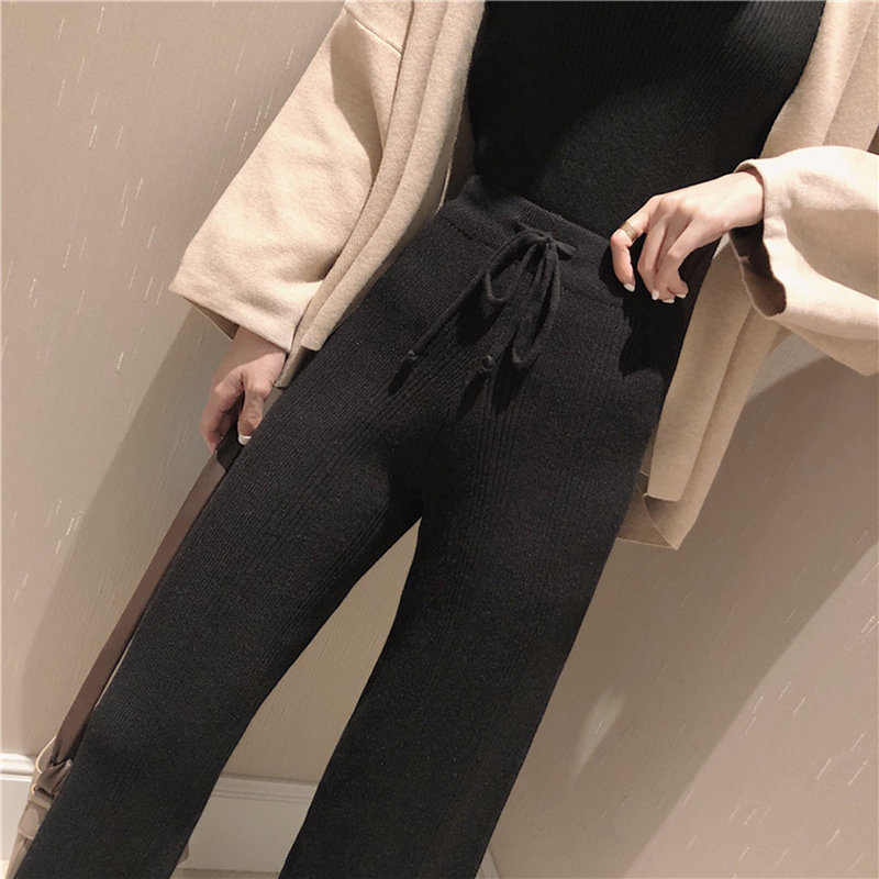 chic休閑直筒長褲子女秋冬2018新款韓版氣質高腰顯瘦針織闊腿褲潮