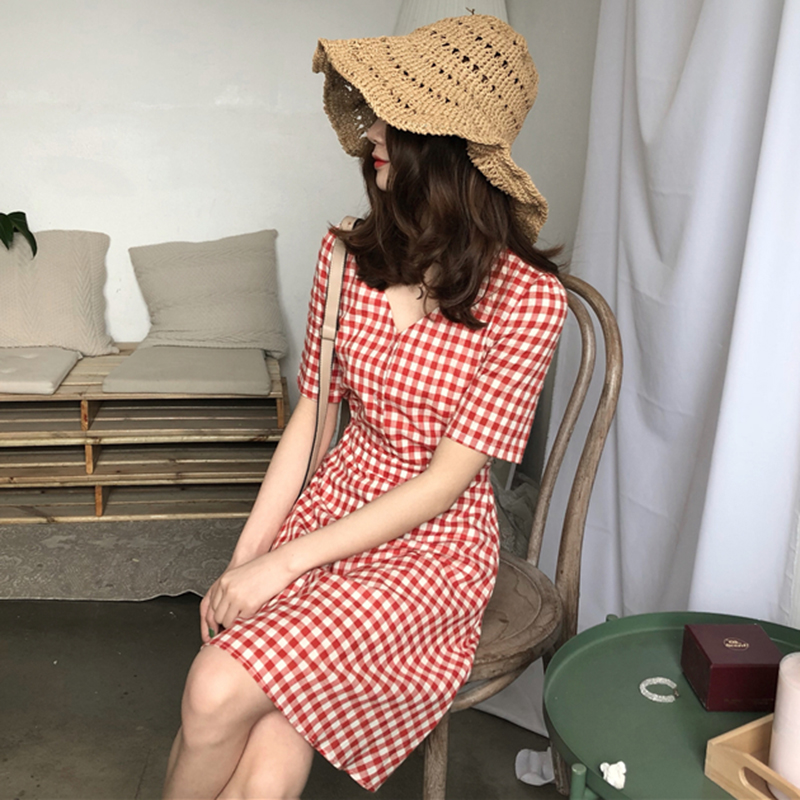 基礎的V領,腰部兩側有長長的帶子,隨意系上蝴蝶結即可收腰型