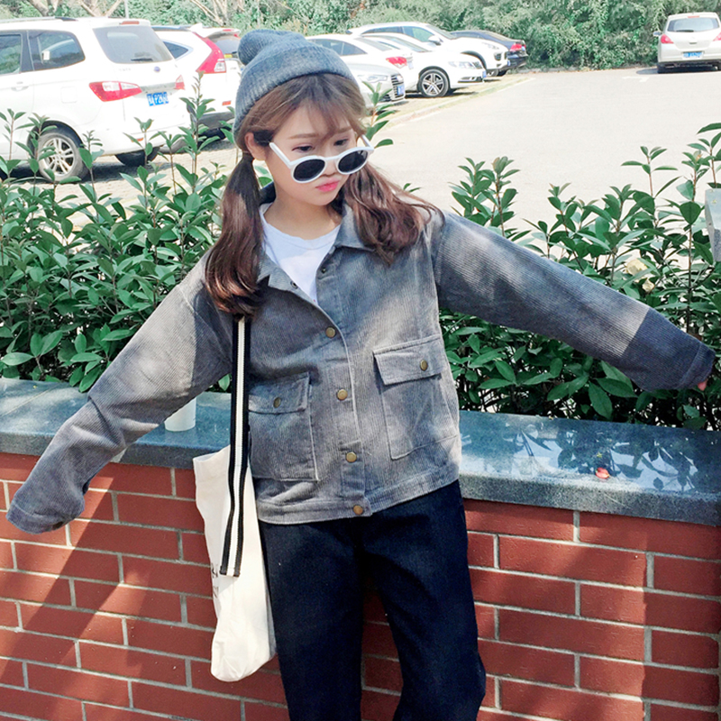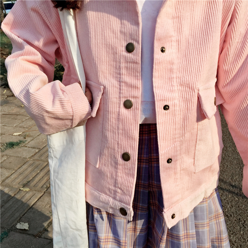 學院風寬松燈芯絨外套2018新款甜美少女粉色上衣學生休閑長袖秋裝
