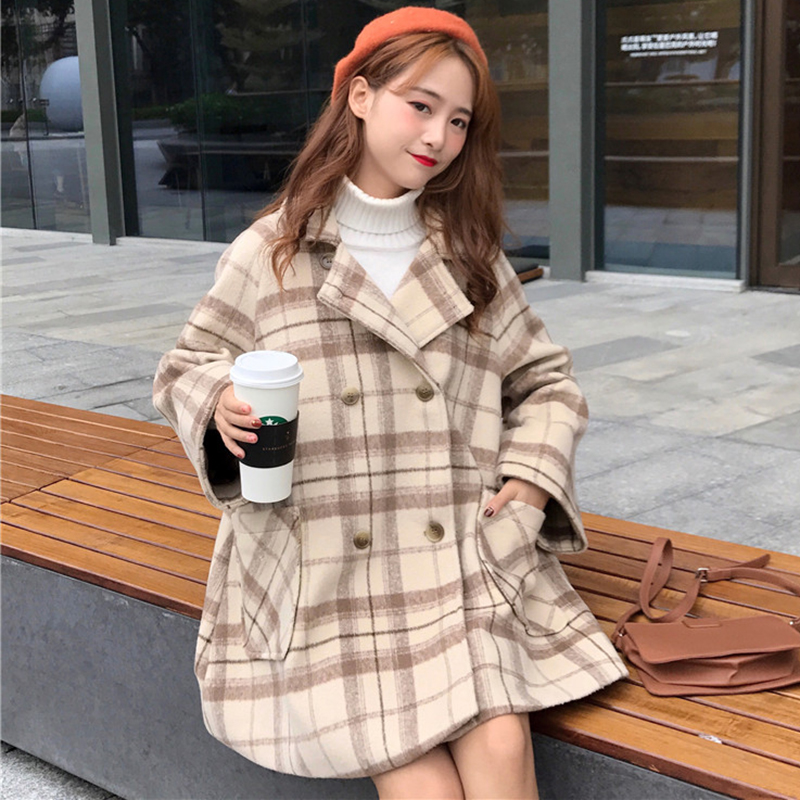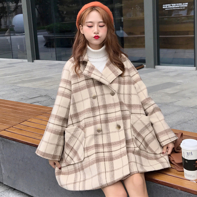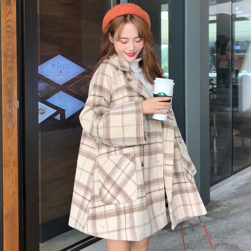 / 2018流行毛呢外套女秋冬裝新款赫本大衣小個子格紋風衣學院風開衫