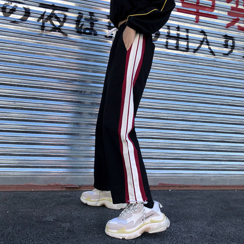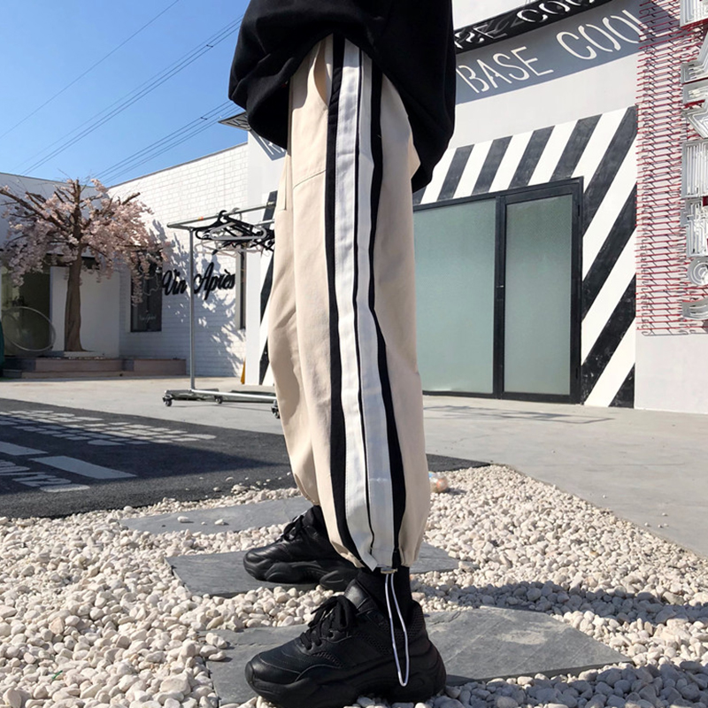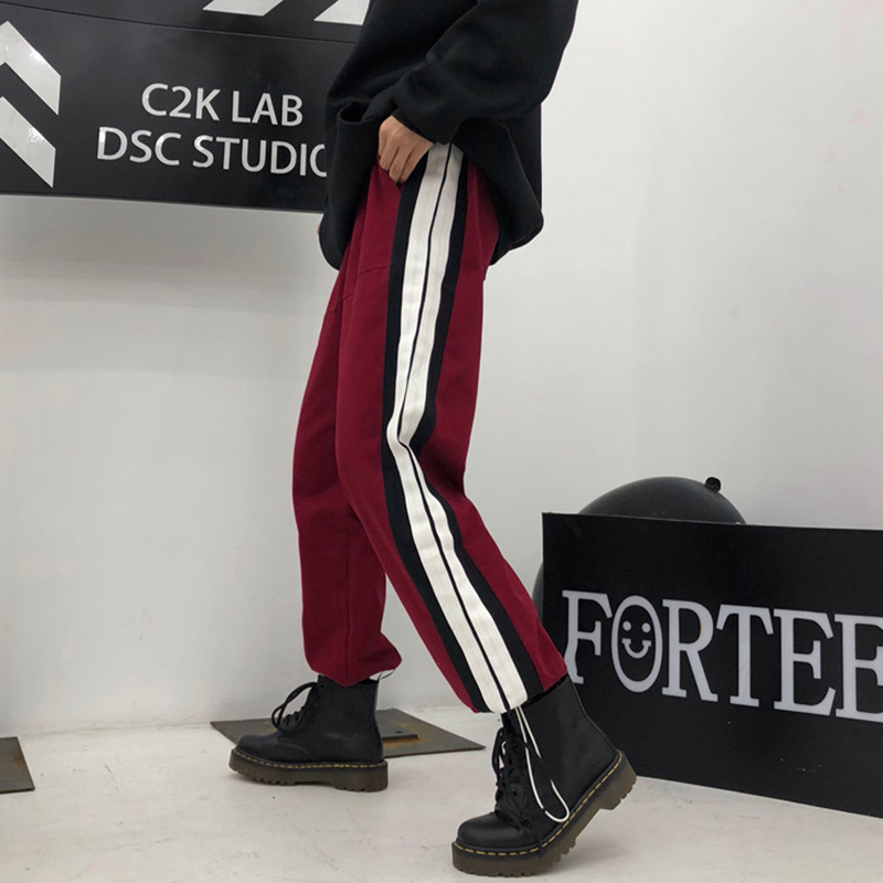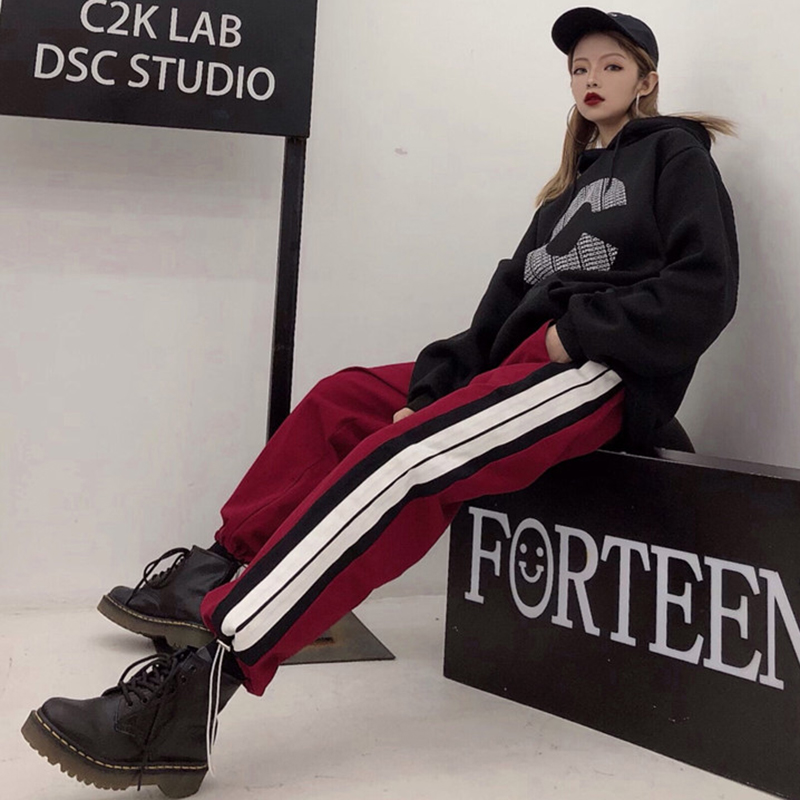 / 學生寬松加絨初戀休閑褲子女秋冬裝新款時尚條紋八分哈倫運動褲潮