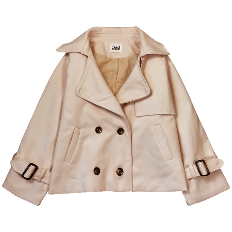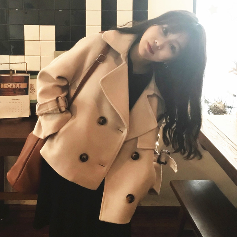 / 復古西裝領毛呢短外套秋冬女裝新款雙排扣呢大衣純色寬松長袖上衣