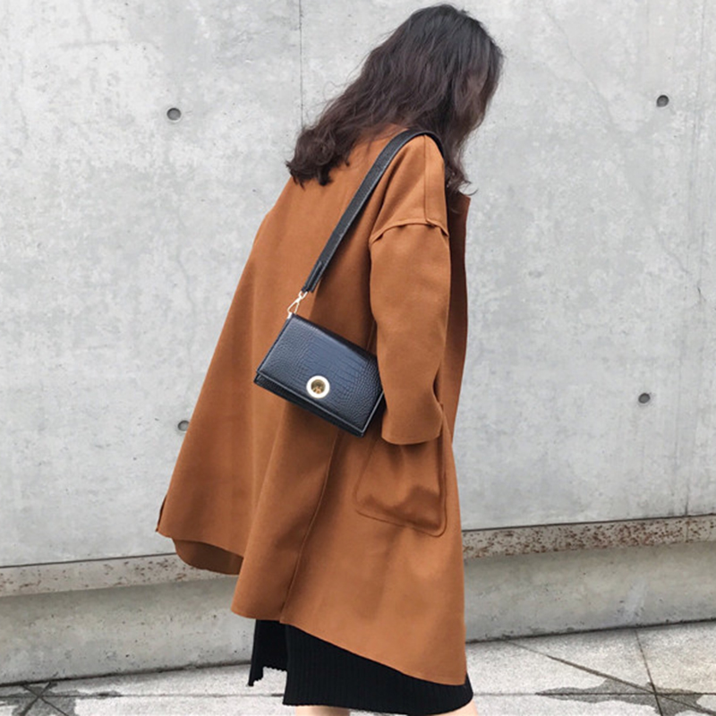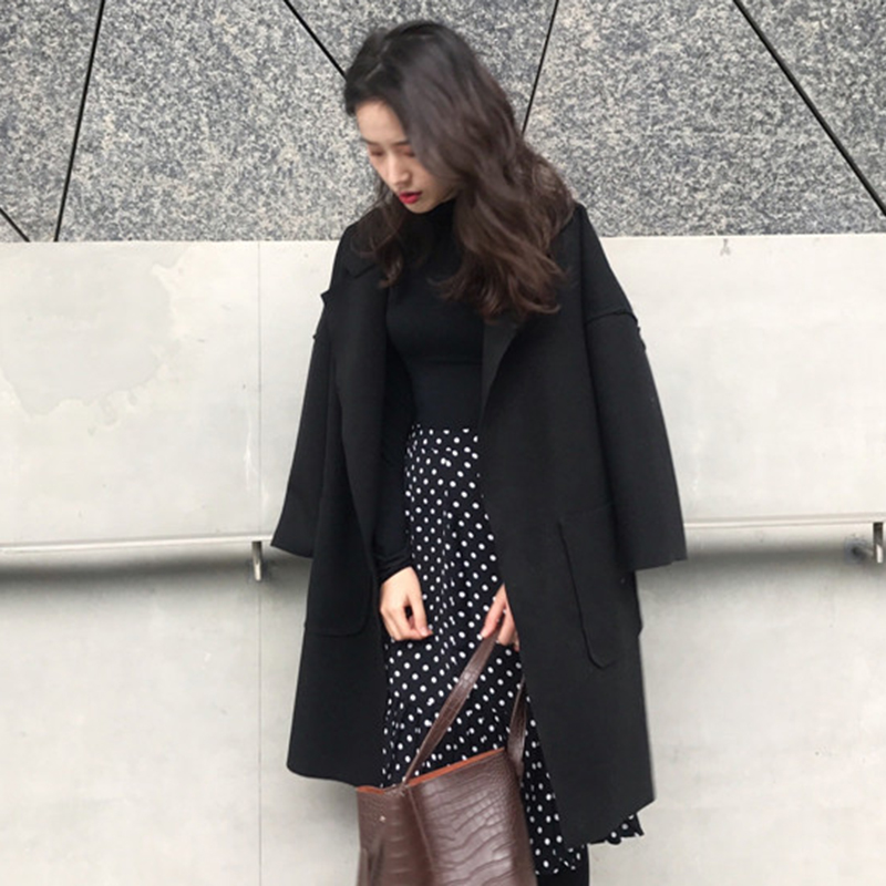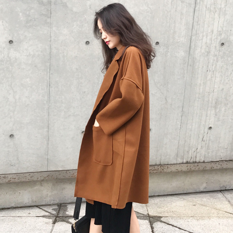 2018流行毛呢外套女秋冬裝新款赫本大衣黑色風衣學生寬松開衫上衣