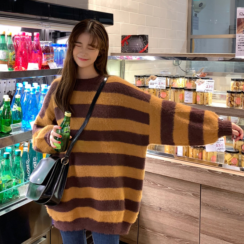 秋冬女裝2018新款韓版時尚百搭套頭針織衫學生寬松條紋毛衣外套潮