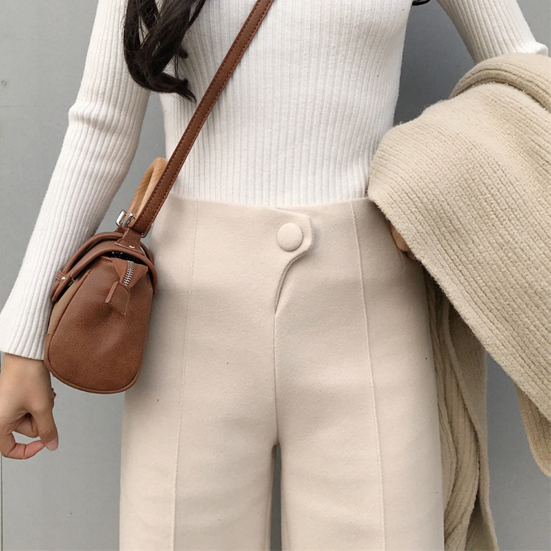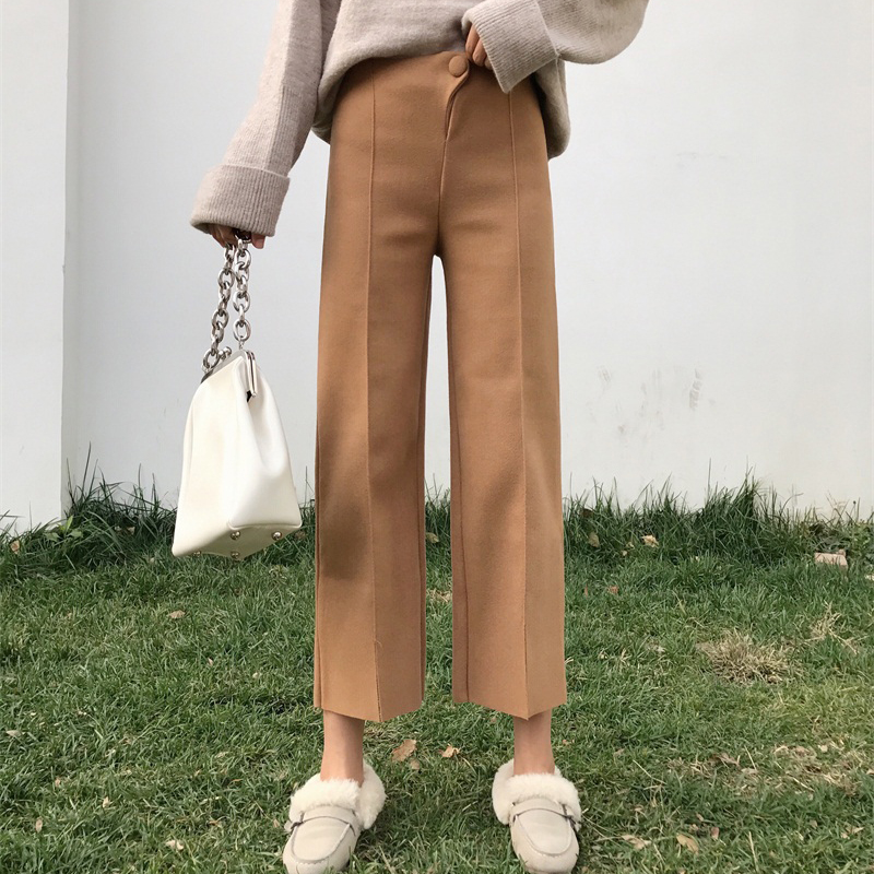 / 秋冬女裝2018新款韓版簡約高腰開叉純色闊腿褲氣質顯瘦九分休閑褲