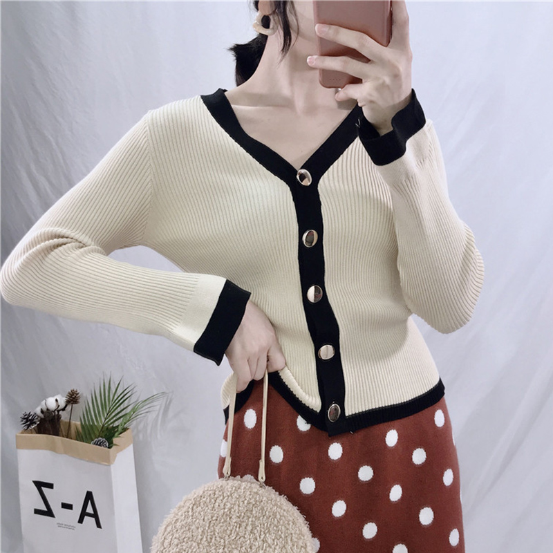 / 毛衣女秋冬裝2018新款港味時尚拼色短款上衣外套寬松休閑針織開衫
