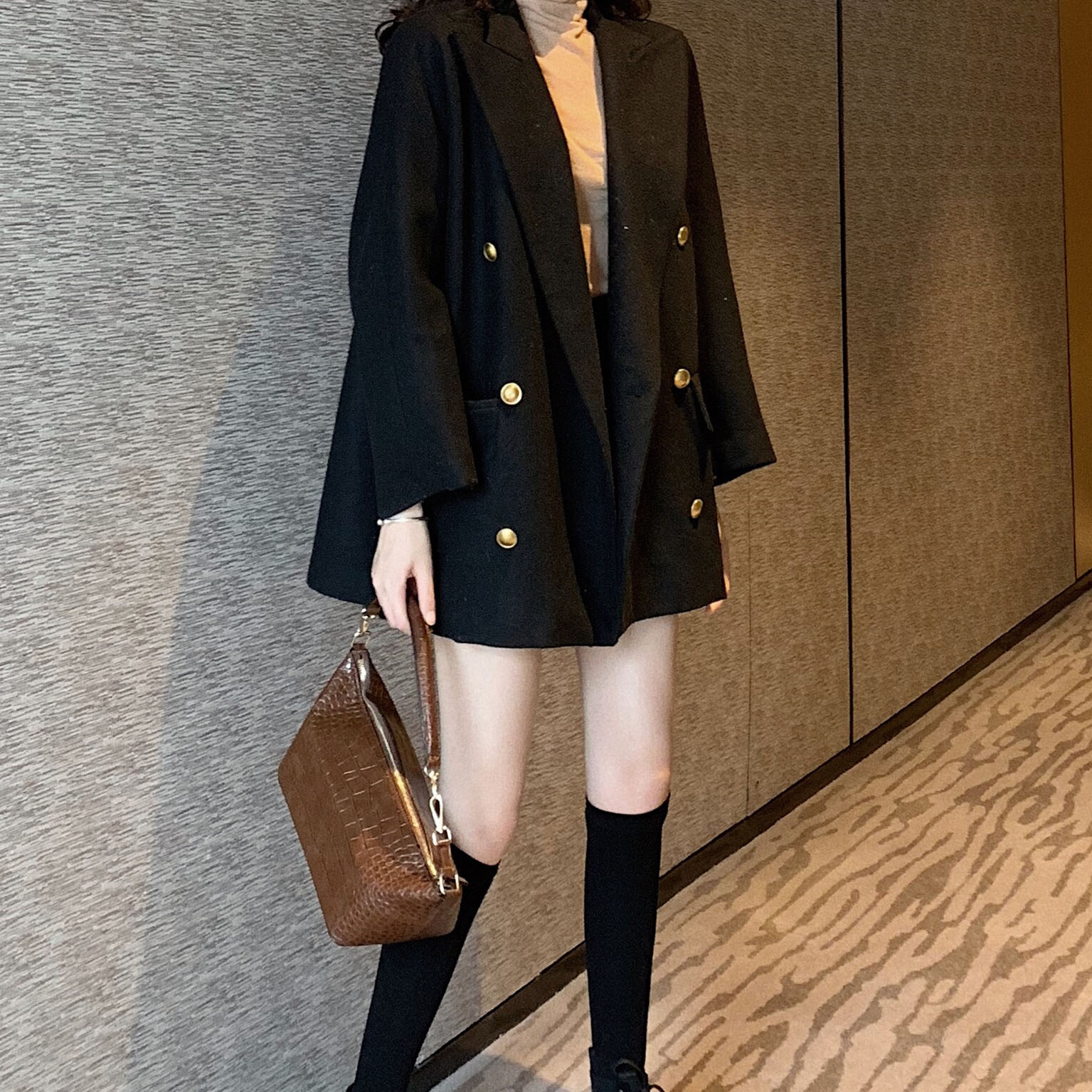/ 復古雙排扣呢子大衣毛呢外套女秋冬2018新款潮+呢子百褶裙褲套裝