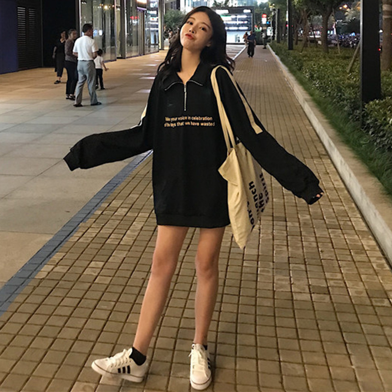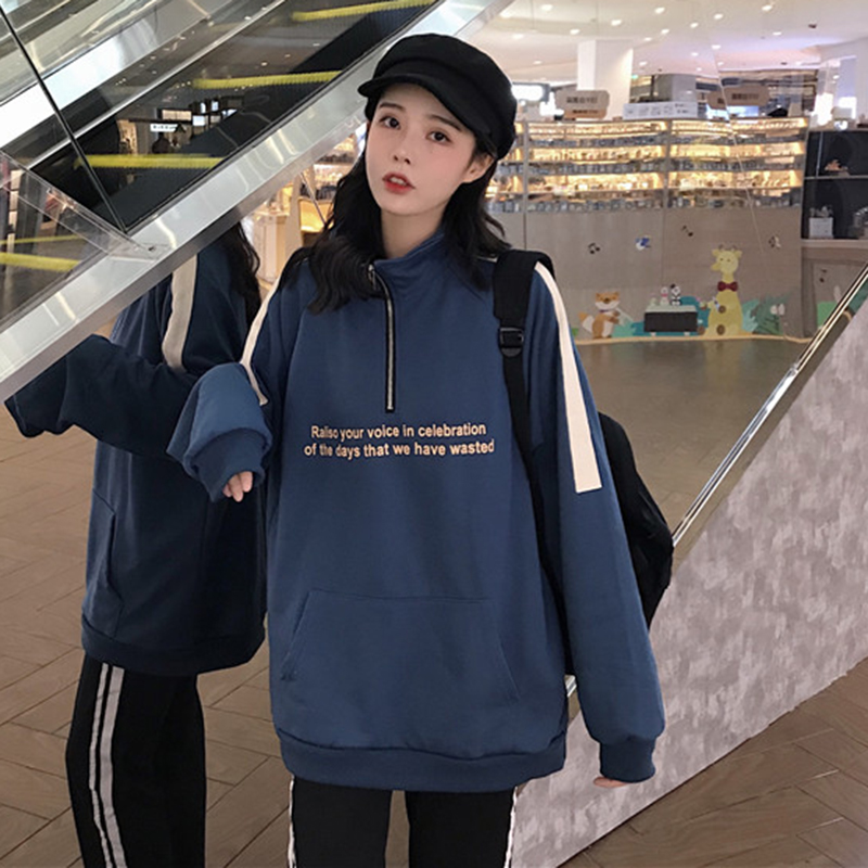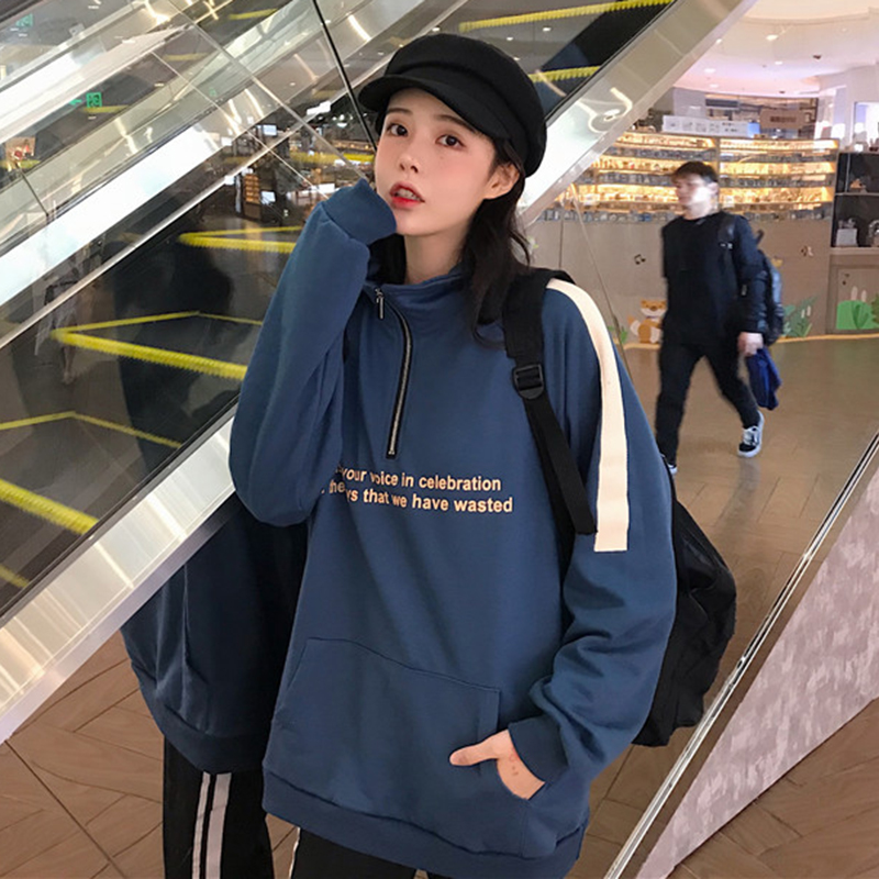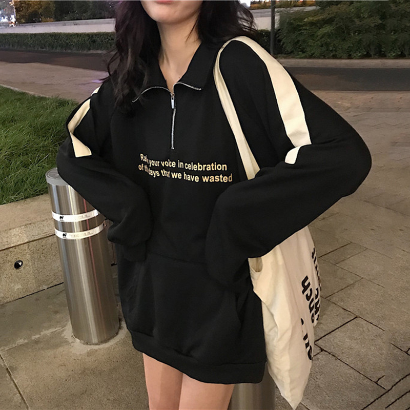 時尚慵懶風衛衣秋裝女2018新款韓版字母印花寬松外套學生長袖上衣