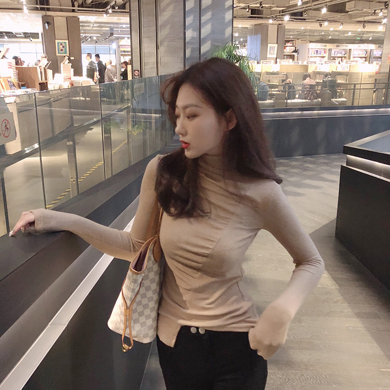 初秋新款女上衣韓版時尚chic基礎款百搭顯瘦高領純色打底衫t恤女