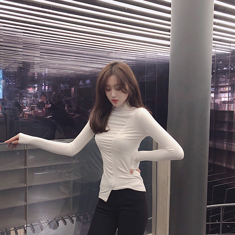 / 韓版時尚冬裝上衣女慵懶長袖t袖女修身顯瘦氣質高領不規則打底衫