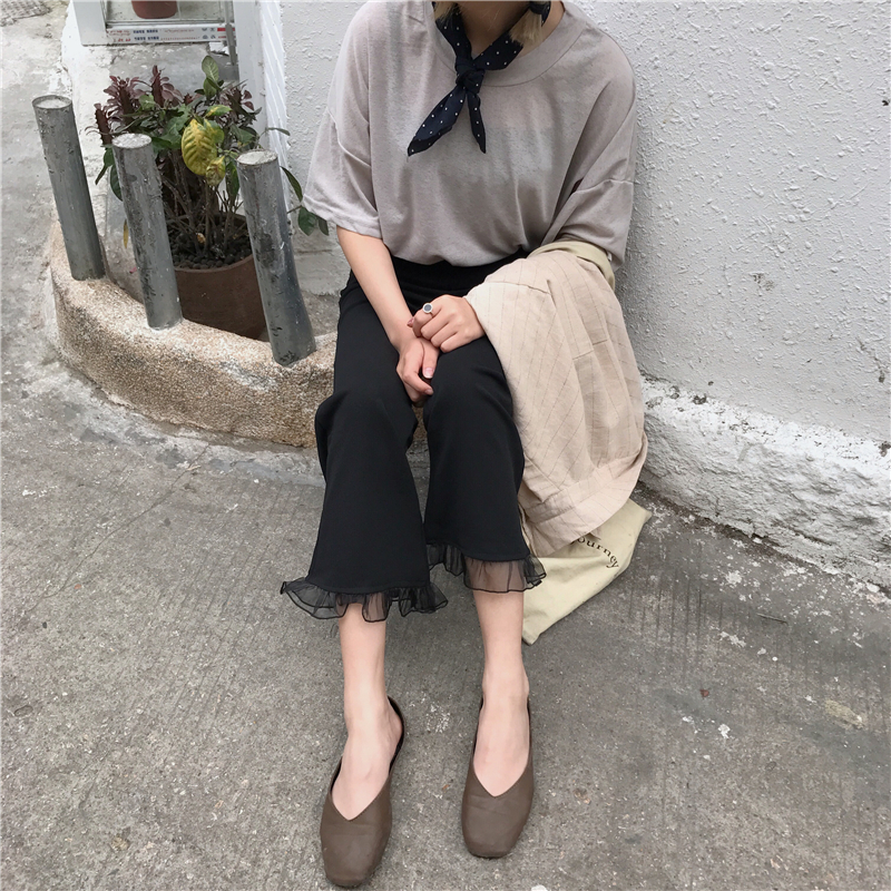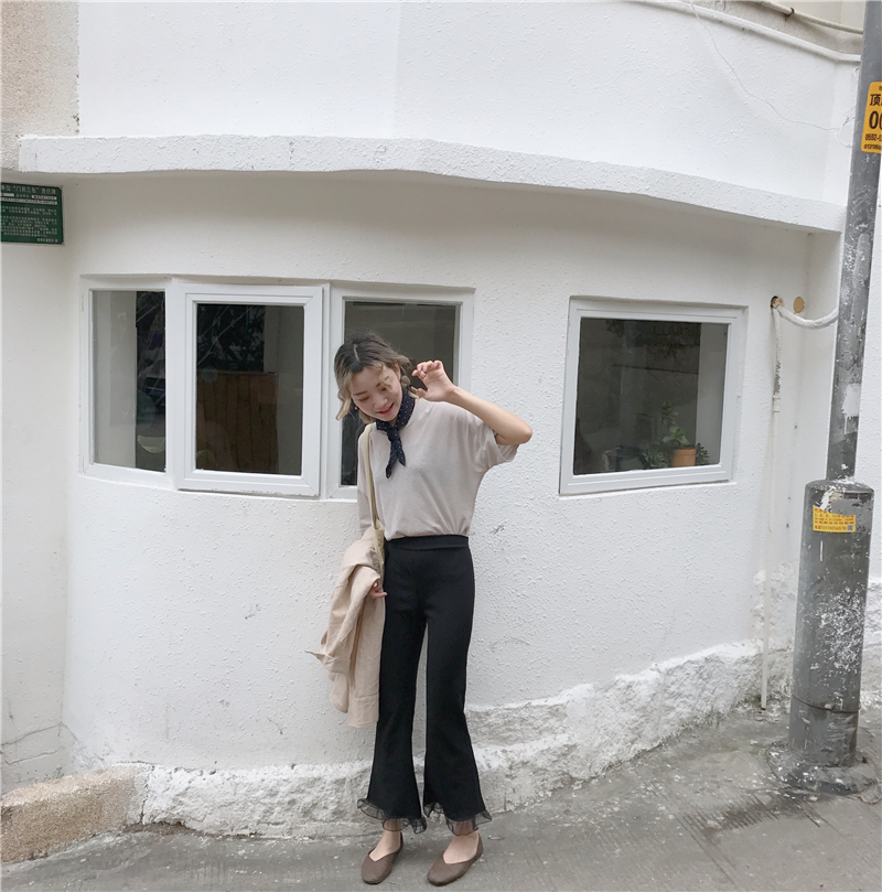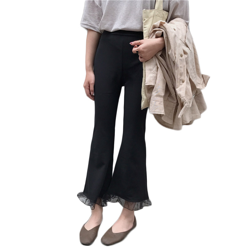 / 腳口拼接九分褲修身百搭黑色喇叭顯瘦彈力褲女學生chic早秋休閑褲