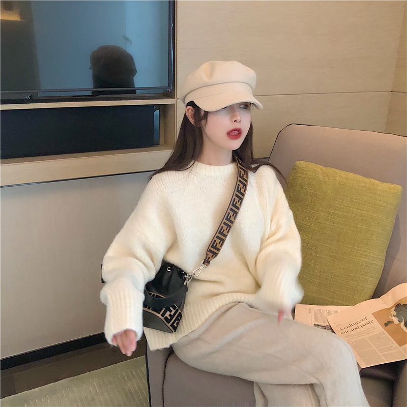 / 女神套裝秋冬新款慵懶風套頭毛衣網紅寬松針織衫+百搭毛呢哈倫褲