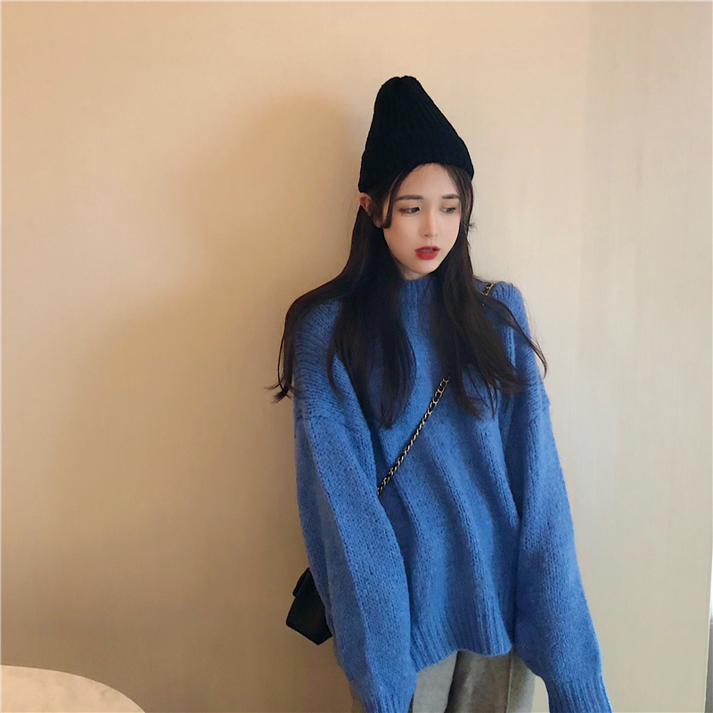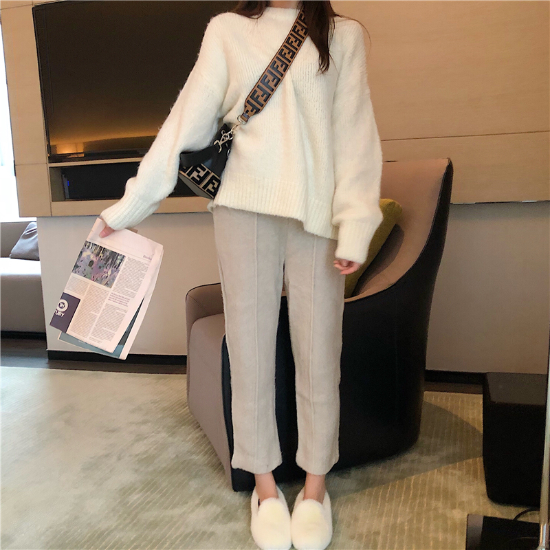 韓版女神套裝秋冬寬松套頭加厚慵懶風毛衣女+高腰直筒闊腿九分褲