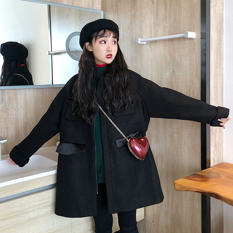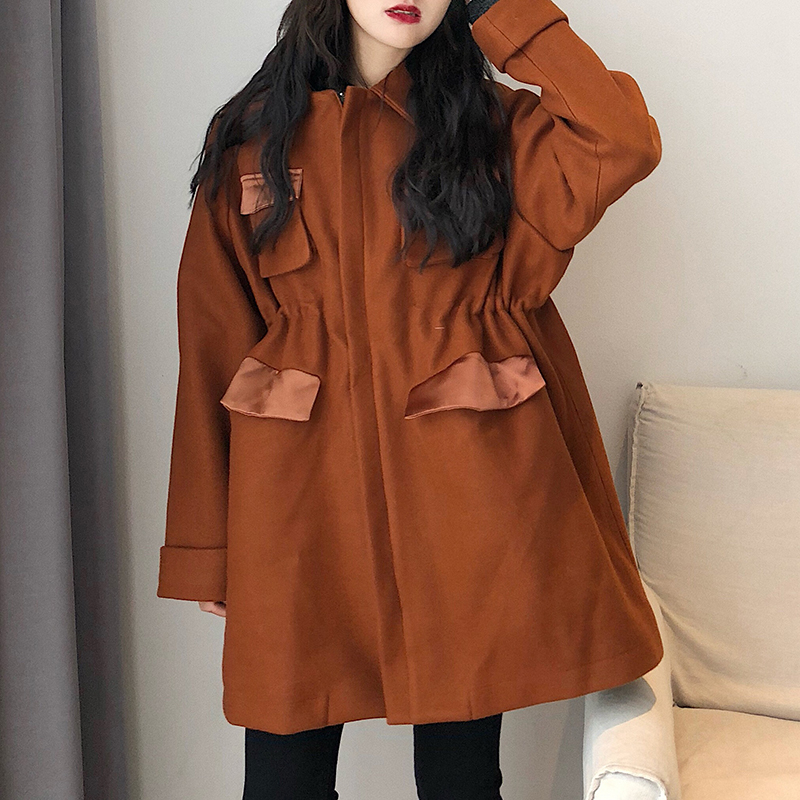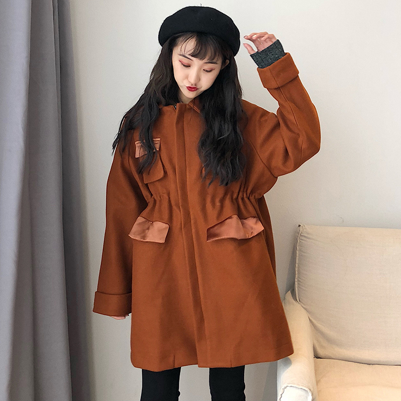 2018流行呢子大衣女秋冬裝新款韓版氣質寬松翻領中長款毛呢外套潮