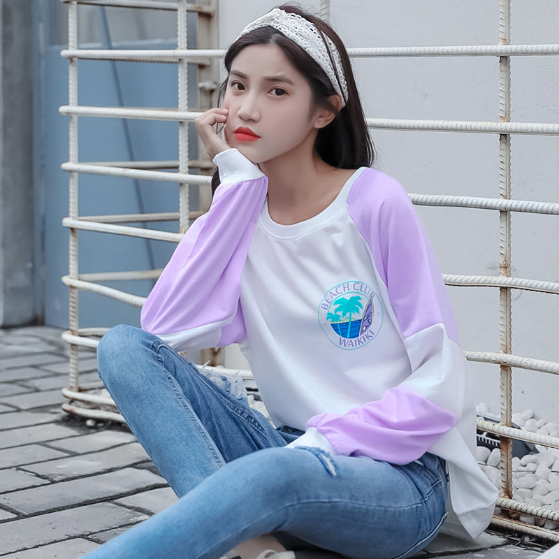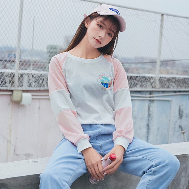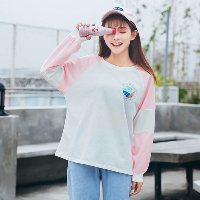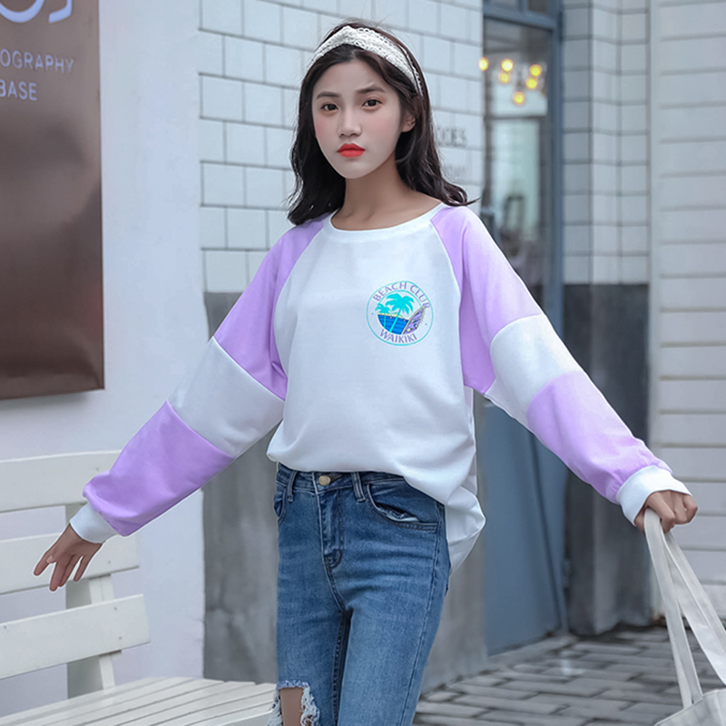 秋冬女裝2018新款韓版學生百搭長袖套頭衛衣時尚寬松拼色字母外套
