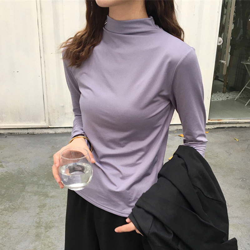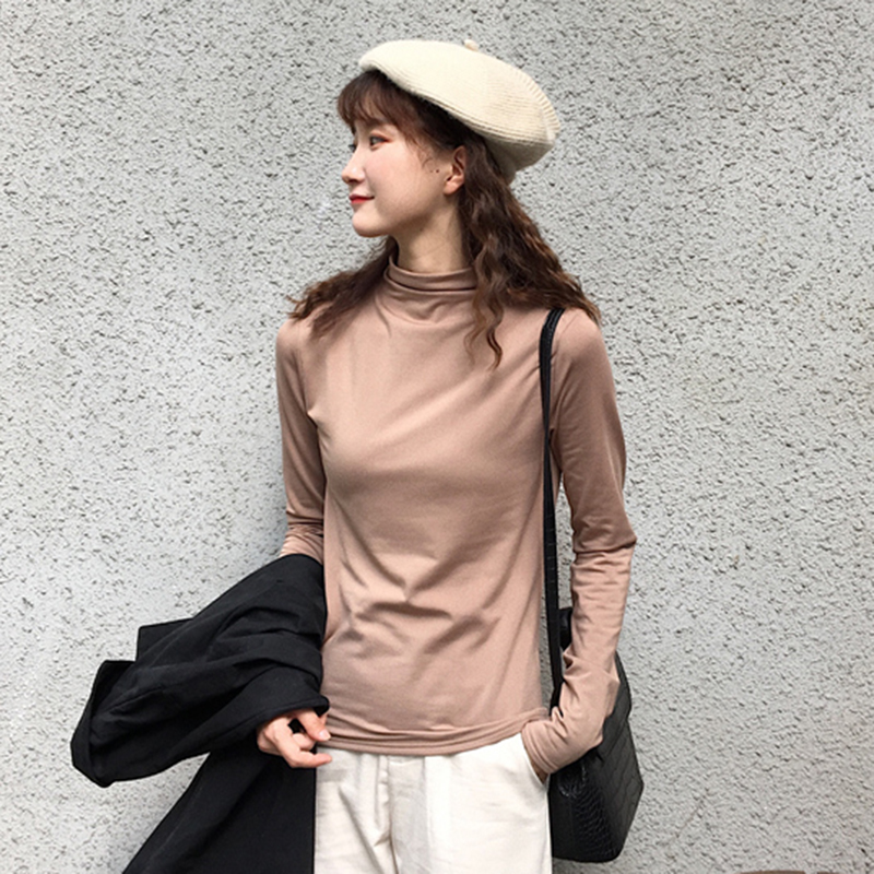 / 糖果色打底衫秋裝女2018新款韓版學生修身長袖T恤時尚半高領上衣