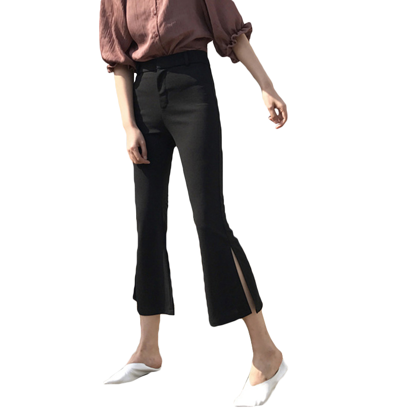 / 秋季新款復古韓國百搭純色顯瘦喇叭褲氣質風修身基礎休閑褲女裝潮