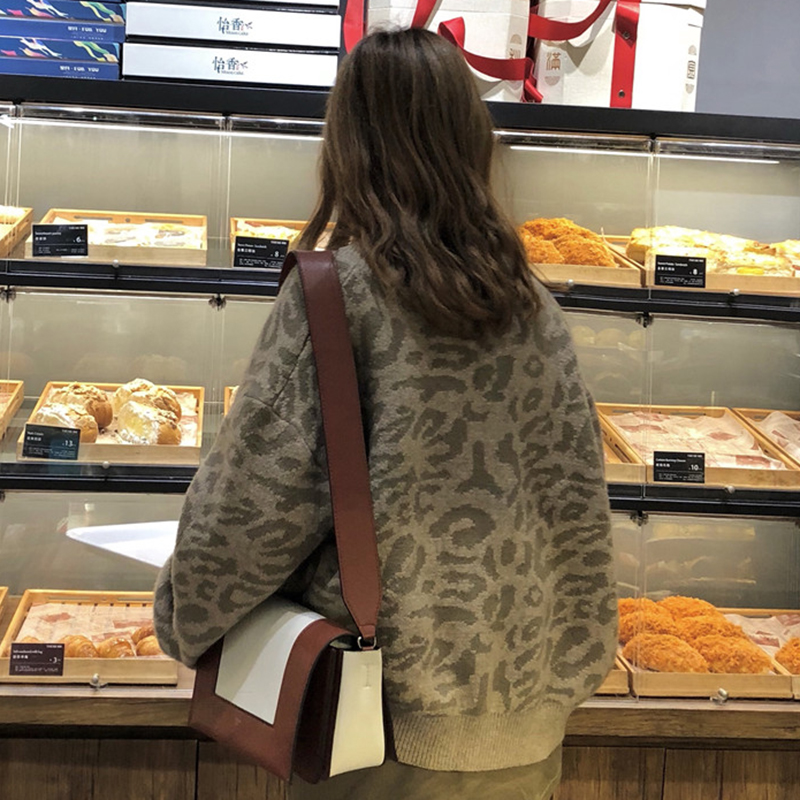 / 慵懶風毛衣秋裝女2018新款時尚豹紋長袖針織開衫學生寬松休閑外套