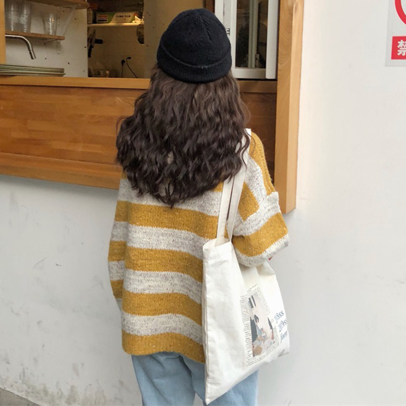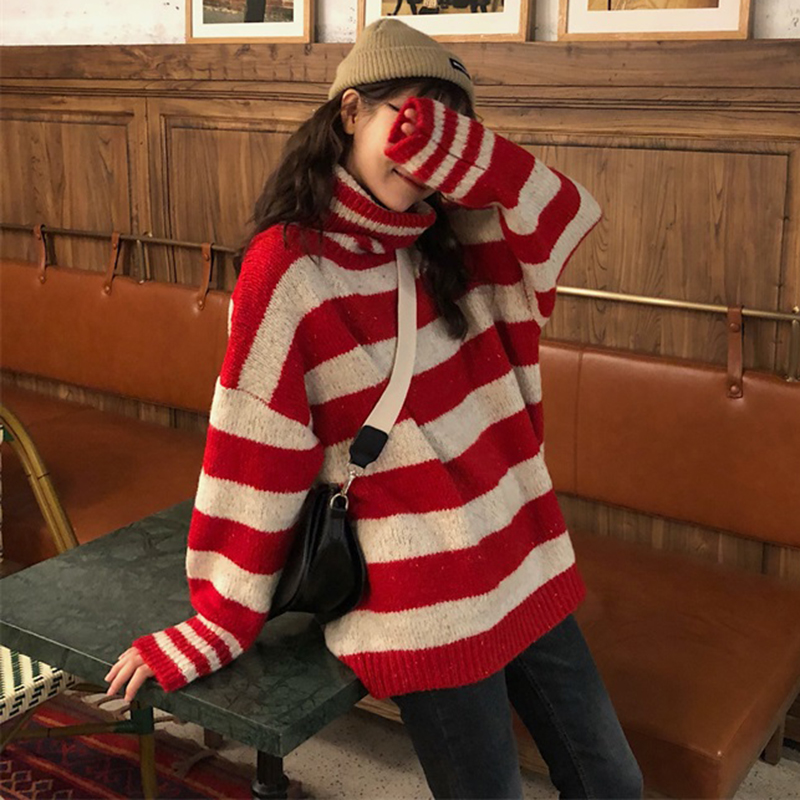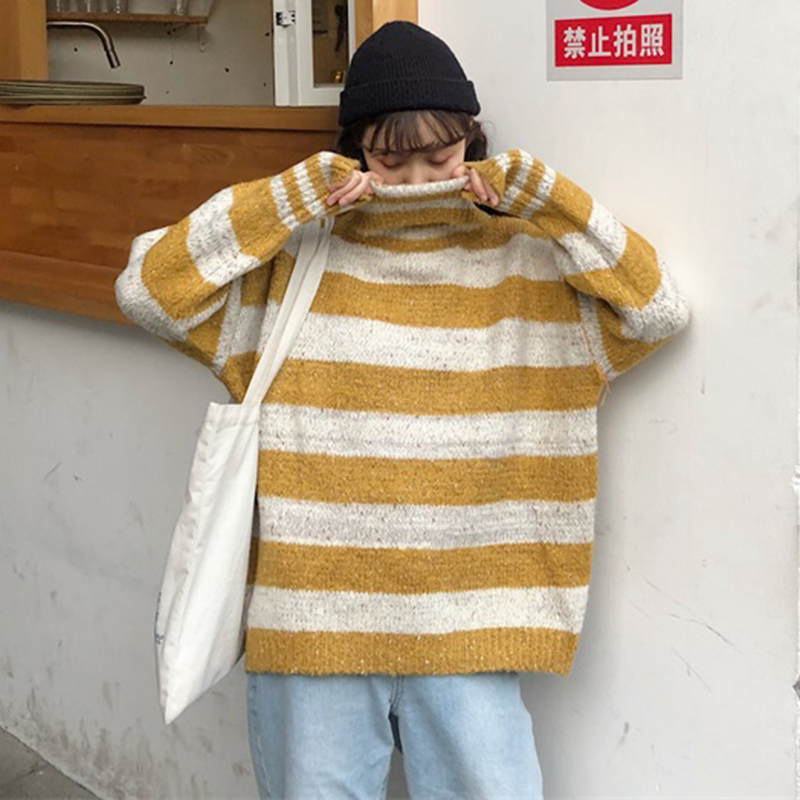 / 韓版寬松條紋長袖毛衣女秋冬裝2018新款高領針織外套學生慵懶上衣