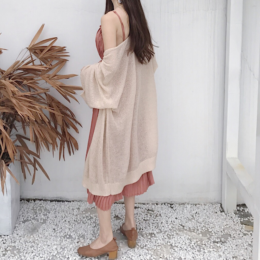 / 春秋2018新款女裝慵懶風防曬針織開衫中長款薄款毛衣網紅外套腰帶