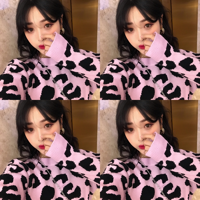 網紅款豹紋毛衣女套頭圓領上衣秋裝女2018新款寬松韓版針織衫潮