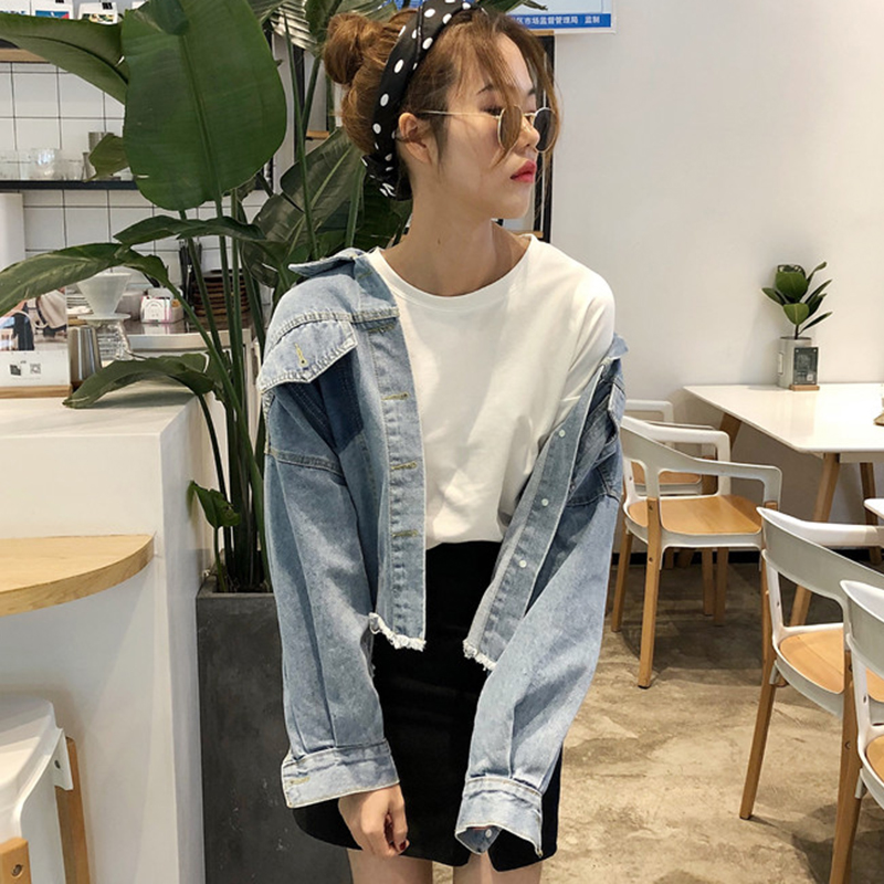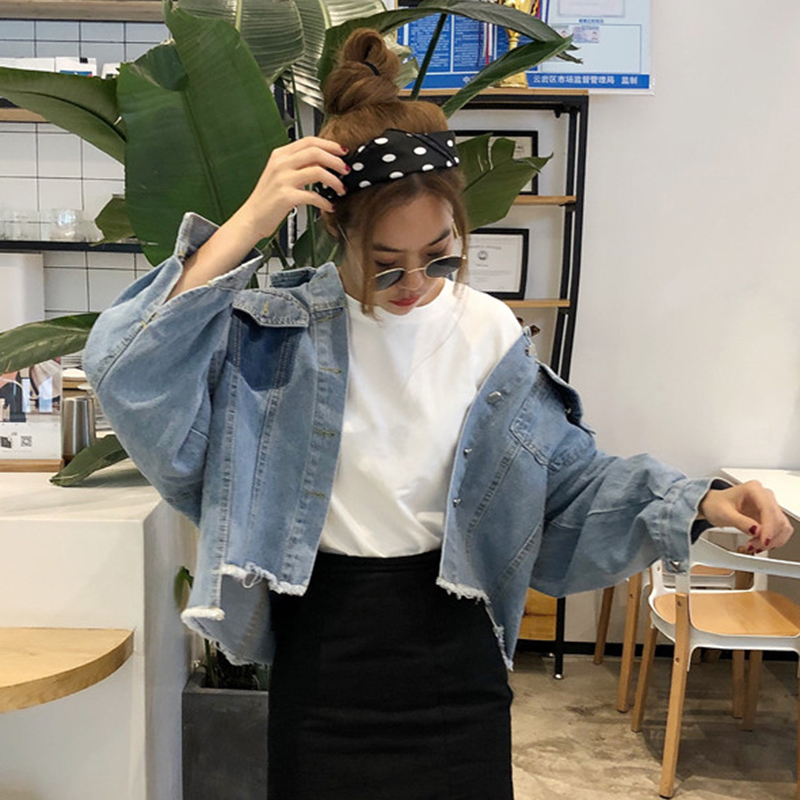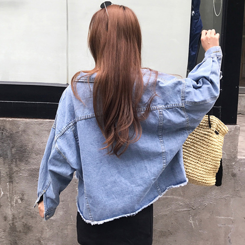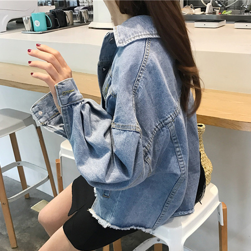 / 時尚毛邊牛仔外套秋冬女裝新款單口袋寬松長袖夾克開衫休閑上衣潮