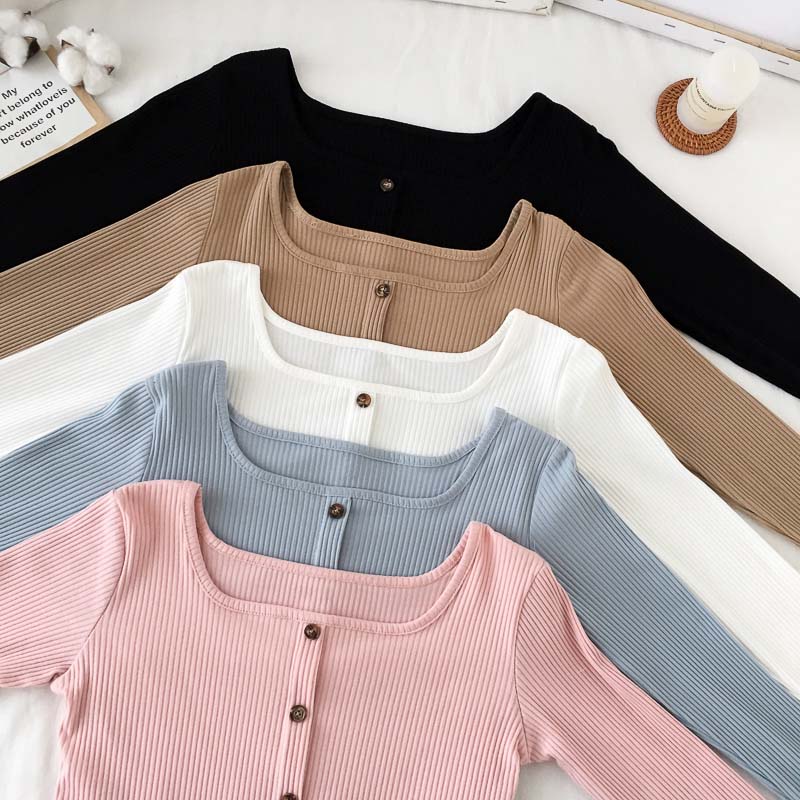 簡約純色方領套頭針織衫秋裝女2018新款港味修身毛衣學生長袖上衣