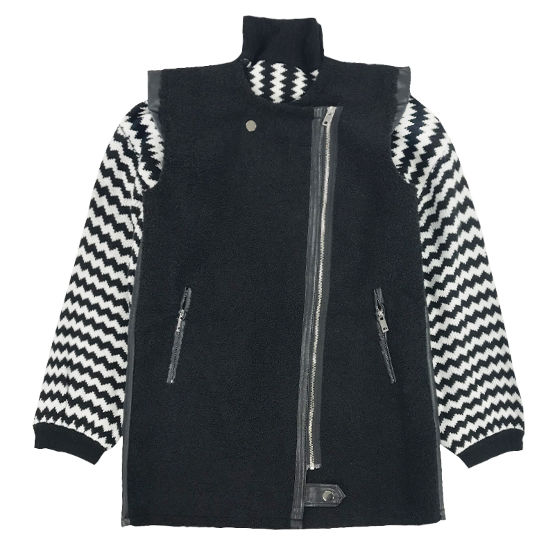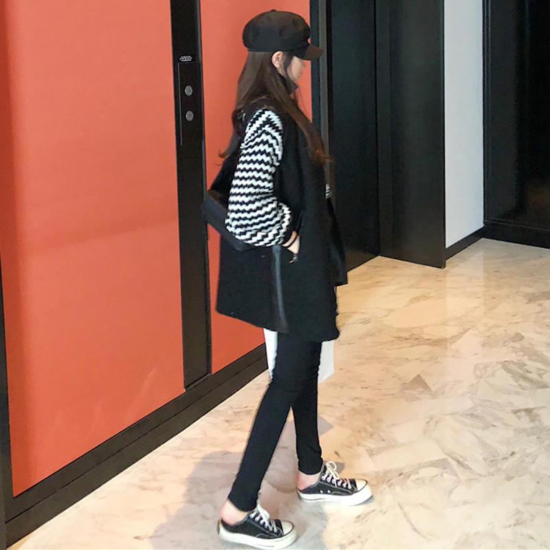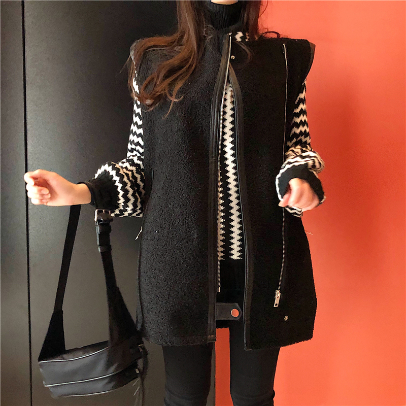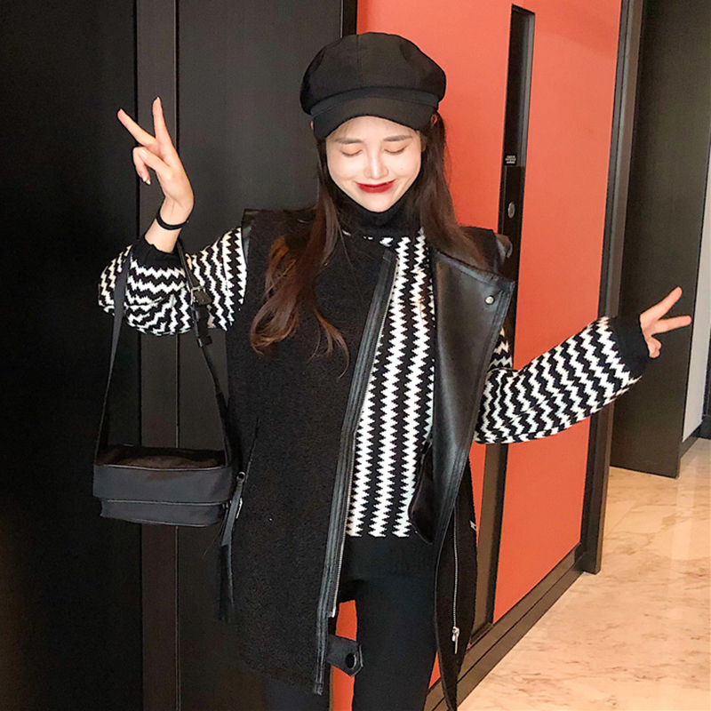 / 套裝女秋冬2018新款拼接皮毛一體馬甲外套寬松條紋長袖針織毛衣潮