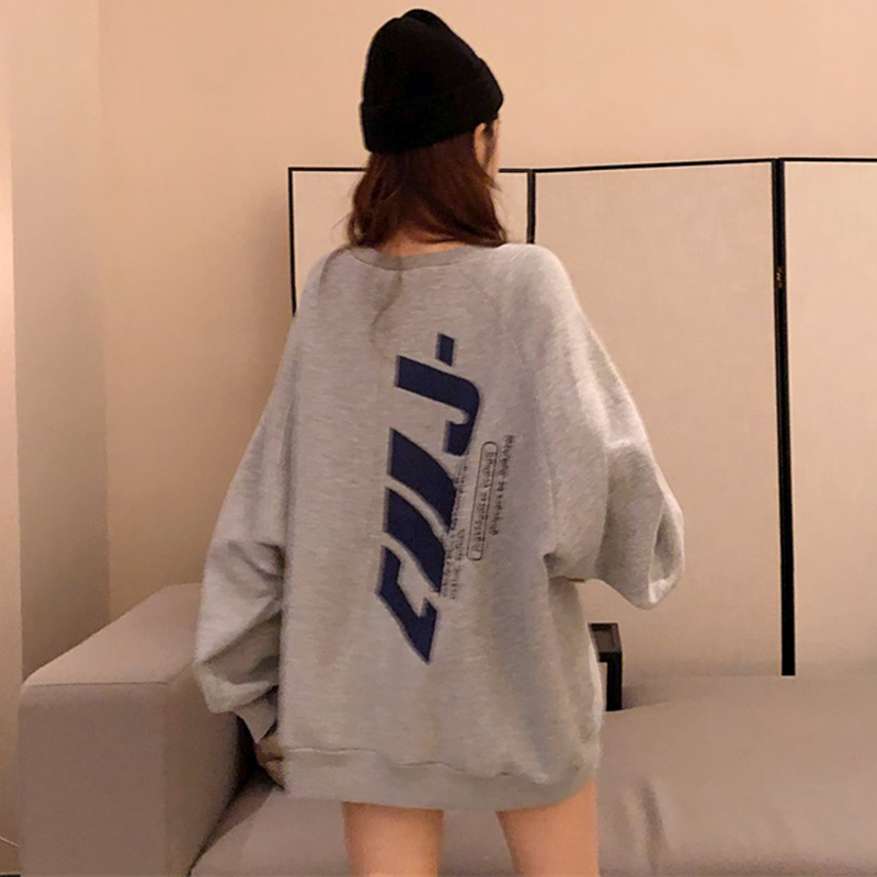 寬松顯瘦圓領長袖衛衣2018新款女秋冬裝加絨字母外套學生時尚上衣